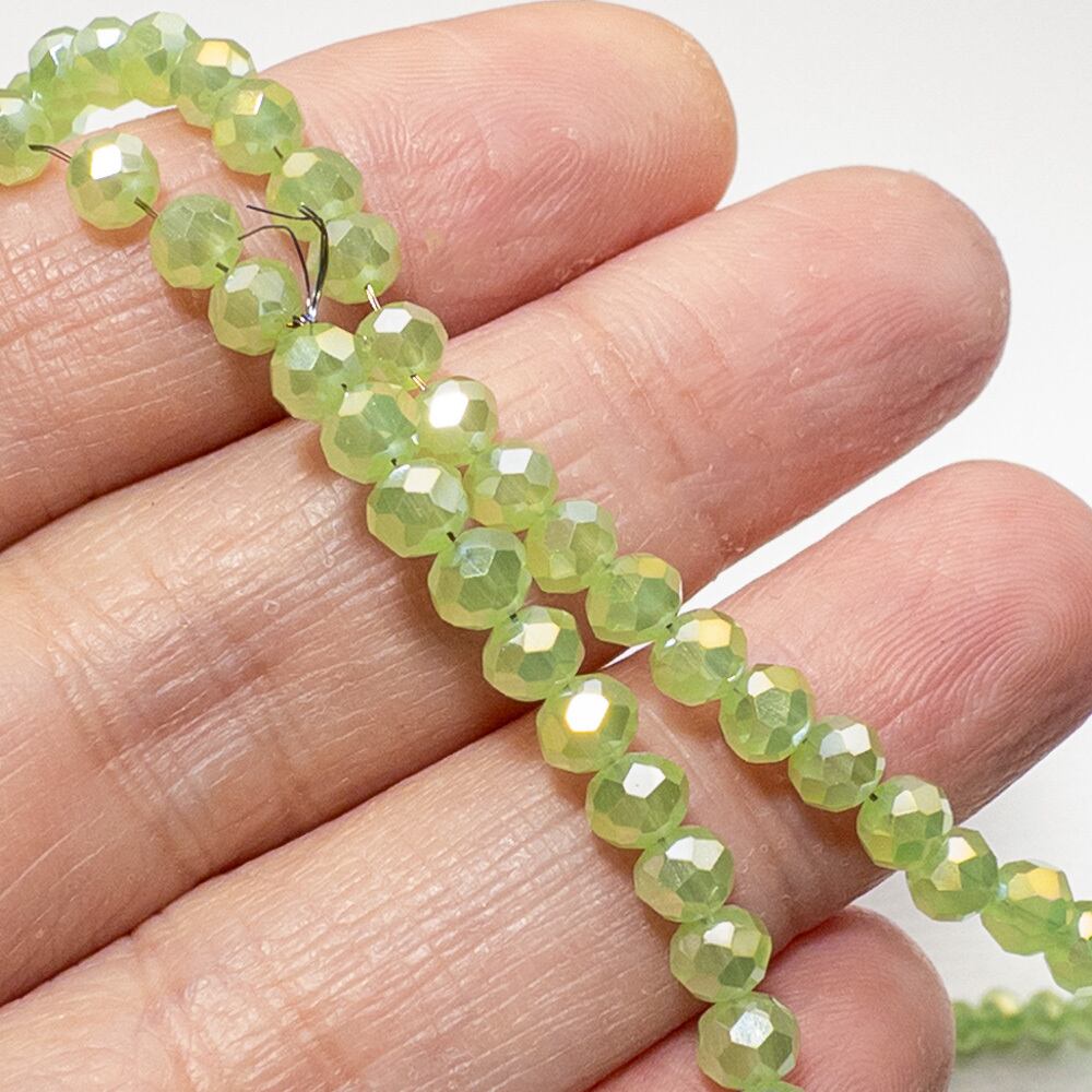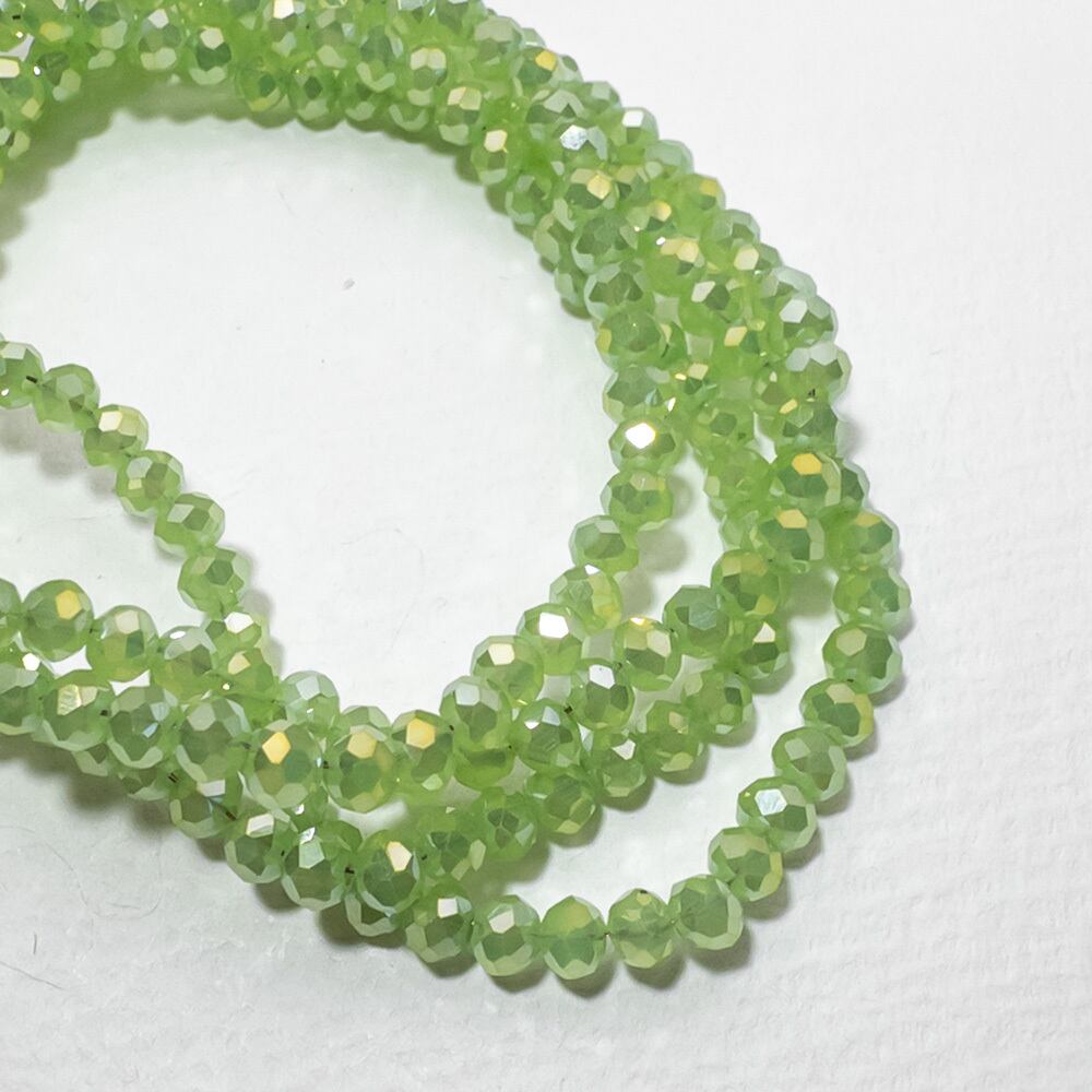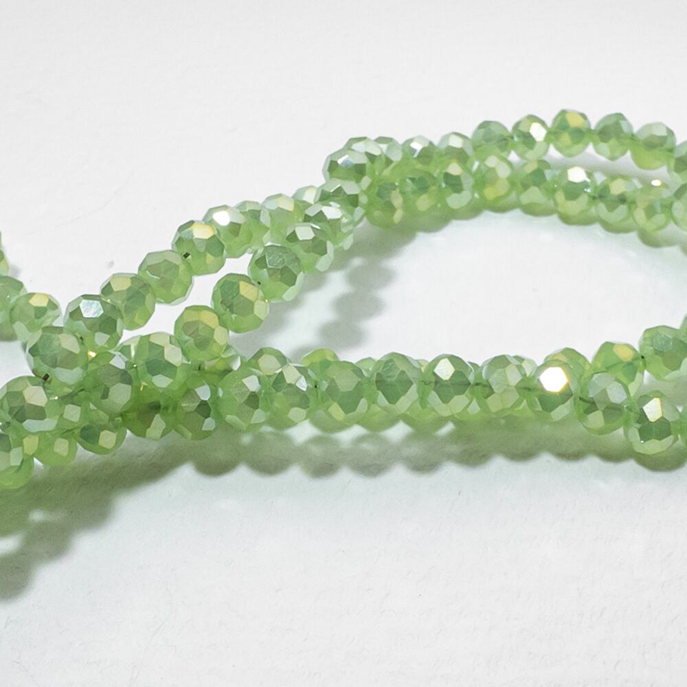 *2連* 電気メッキ ガラスビーズ 4x3mm ペールグリーン AB加工 ボタンカット ロンデル bz339