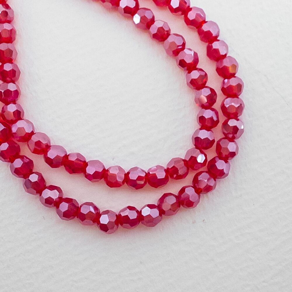*2連* 電気メッキ ガラスビーズ 4mm ファイヤーブリック パール光沢 ラウンドカット bz335