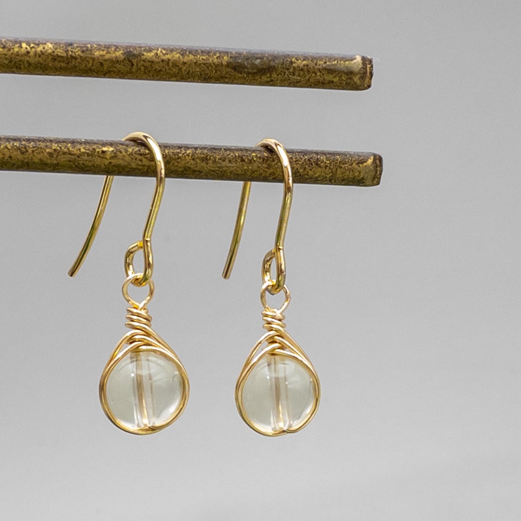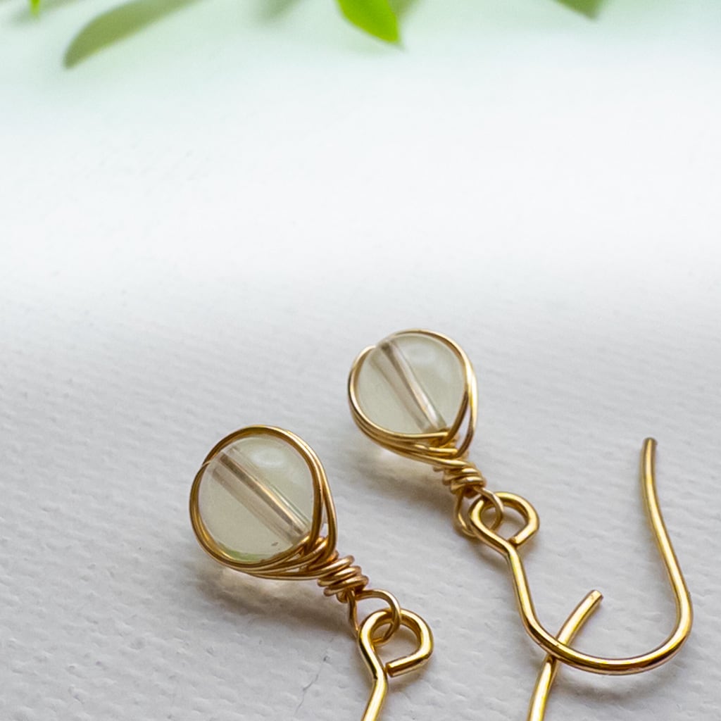 オーソクレース ゴールデンラブラドライト ピアス *embrace* ステンレス ワイヤーラッピング em170