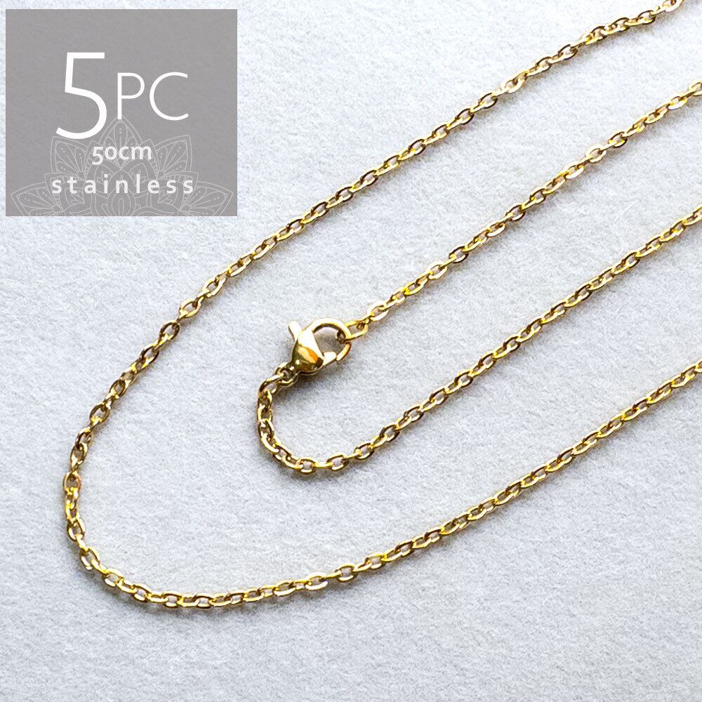 *5本* サージカルステンレス 50cm 小豆チェーン ネックレス ペンダント ゴールド SUS304 ch049