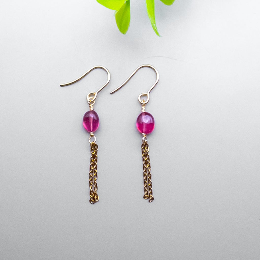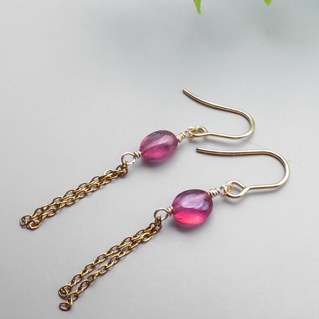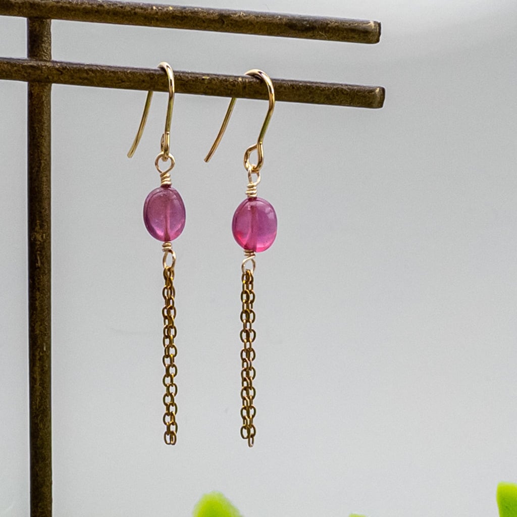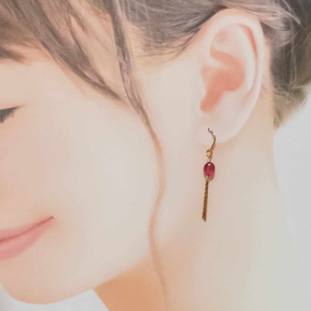 チェーンが揺れる ルビー ピアス ステンレス フックピアス 14GF変更可能 ac-214s