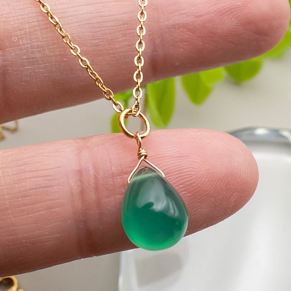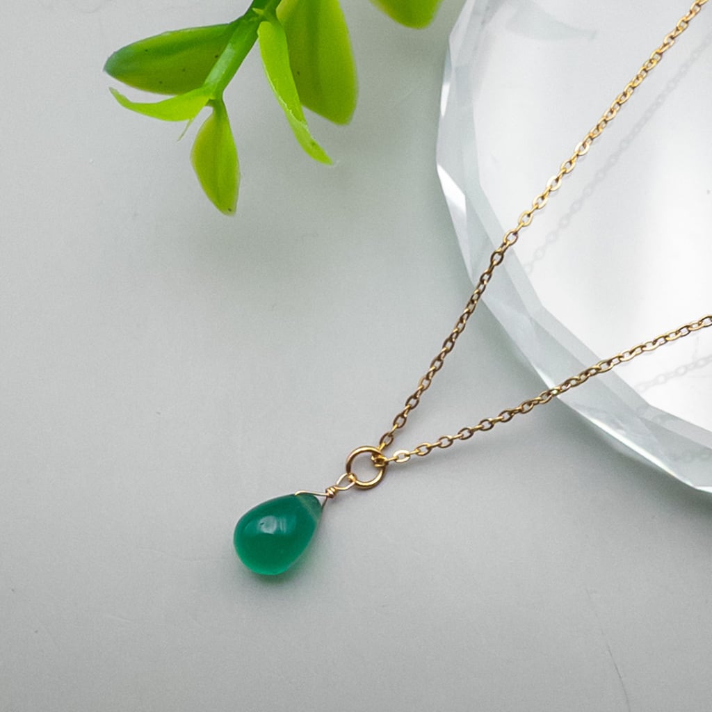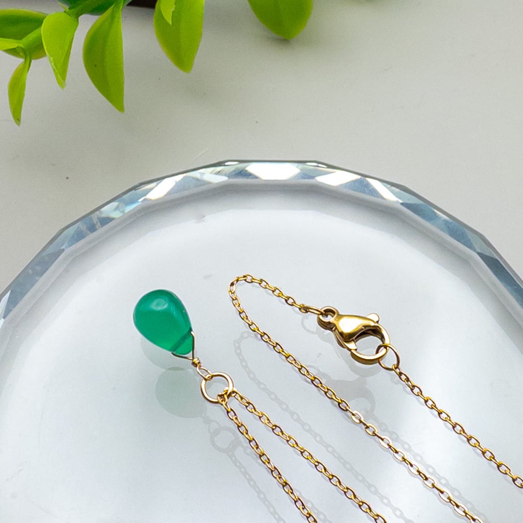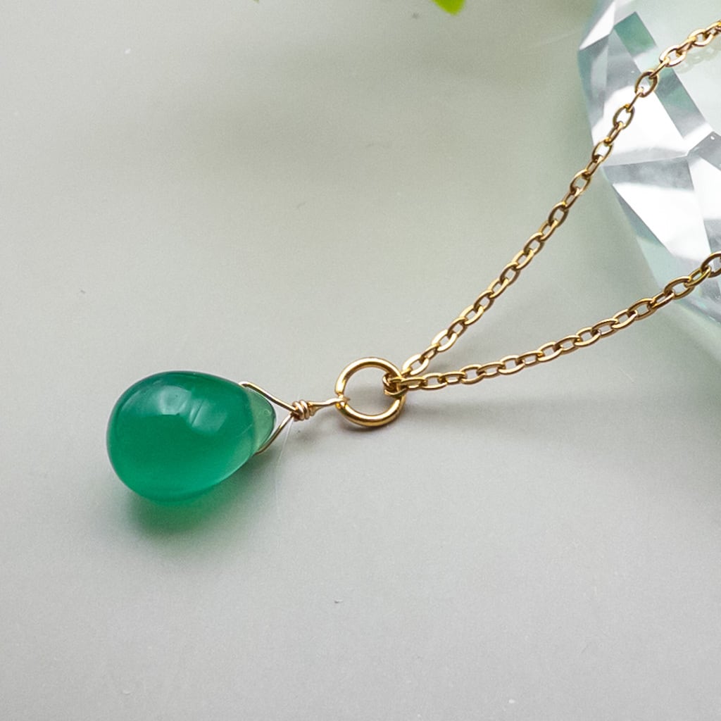 ぷる艶 グリーンオニキス ペンダント ステンレス ネックレス 天然石 ac-147s