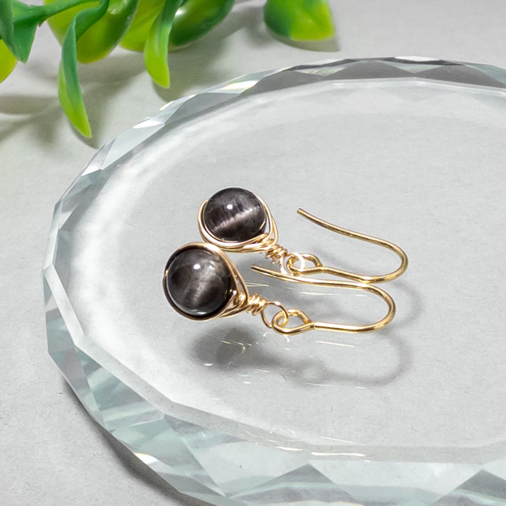 小さな トルマリンキャッツアイ ピアス *embrace* ステンレス シンプル フックピアス em176