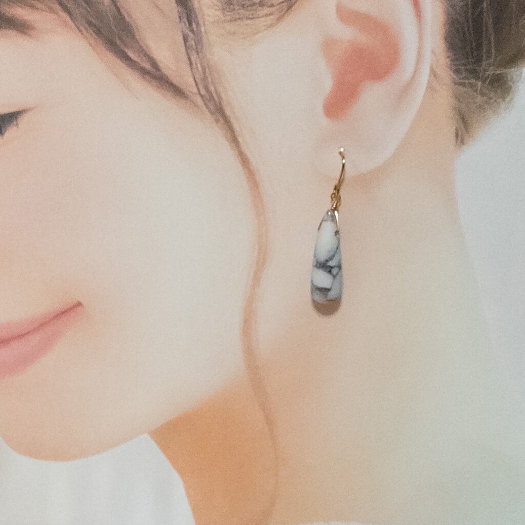 耳元から零れ落ちる雫のようなデザイン。