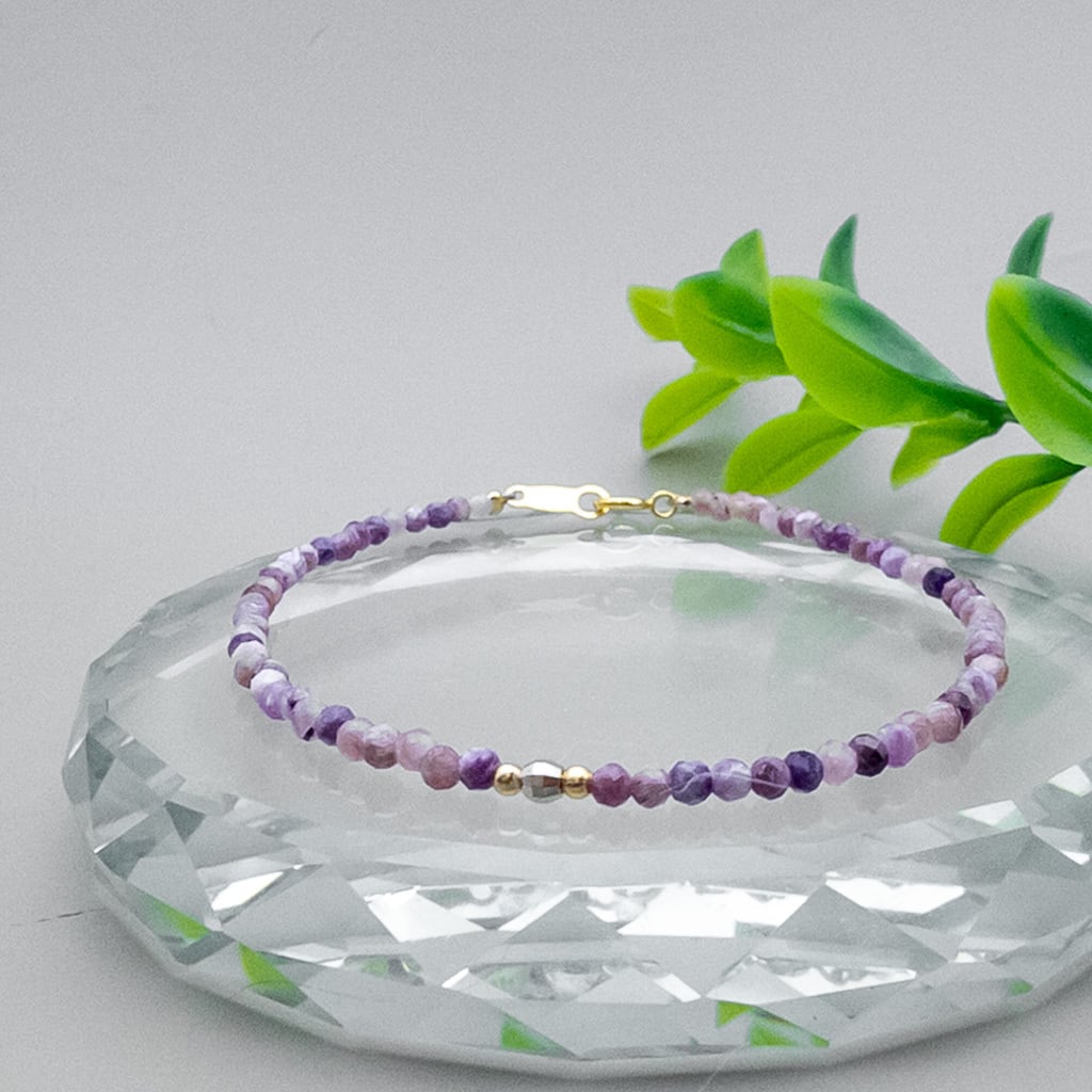 落ち着きのある紫のグラデーションで、癒しのパワーを発揮するとされ、独特な美しさが人気の天然石です。