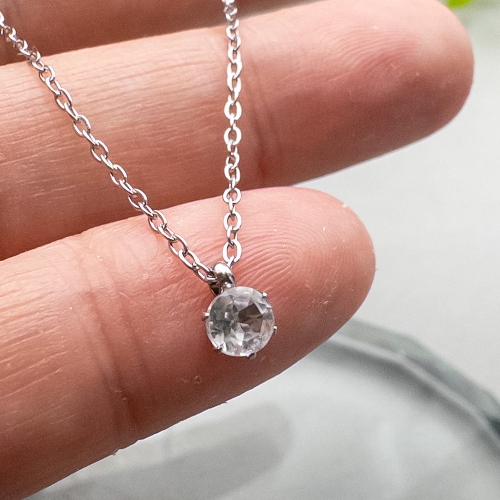 普段使いに 極小 ホワイトトパーズ 4mm ペンダント *Rire* 一粒ペンダント ステンレス ネックレス l021