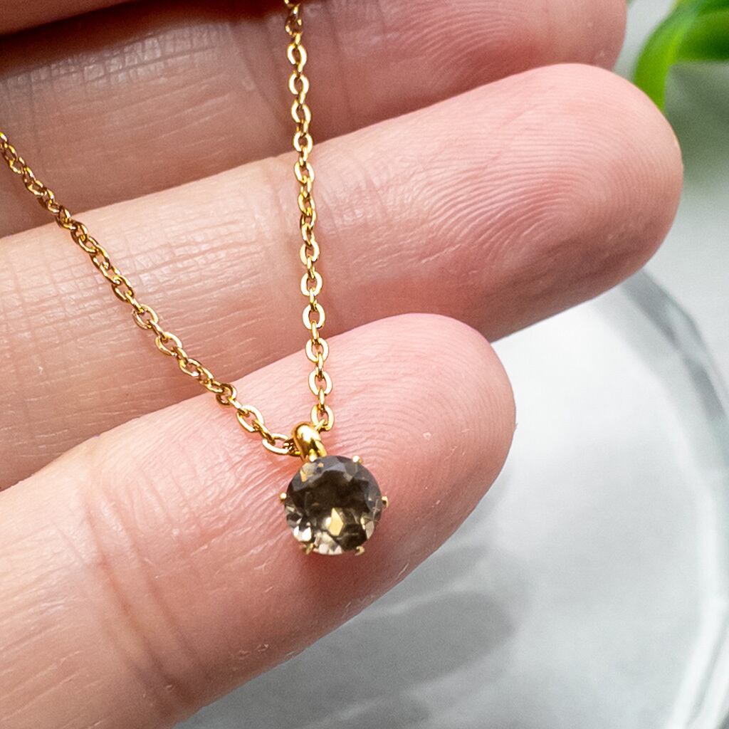 普段使いに 極小 スモーキークォーツ 4mm ペンダント *Rire* ステンレス ネックレス l027