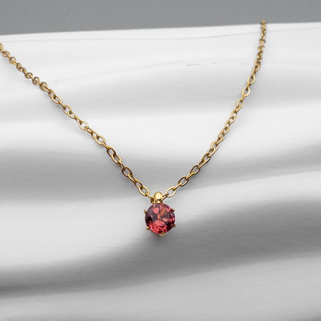 普段使いに 極小 ロードライトガーネット 4mm ペンダント *Rire* ステンレス ネックレス l029