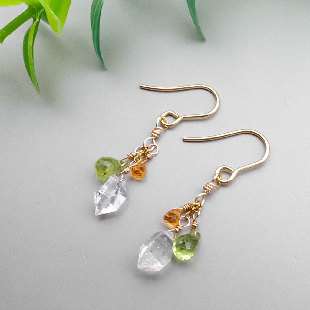 ハーキマーダイヤモンド ペリドット ガーネット ピアス ドロップ *fiore* K14GF変更可 fi041s