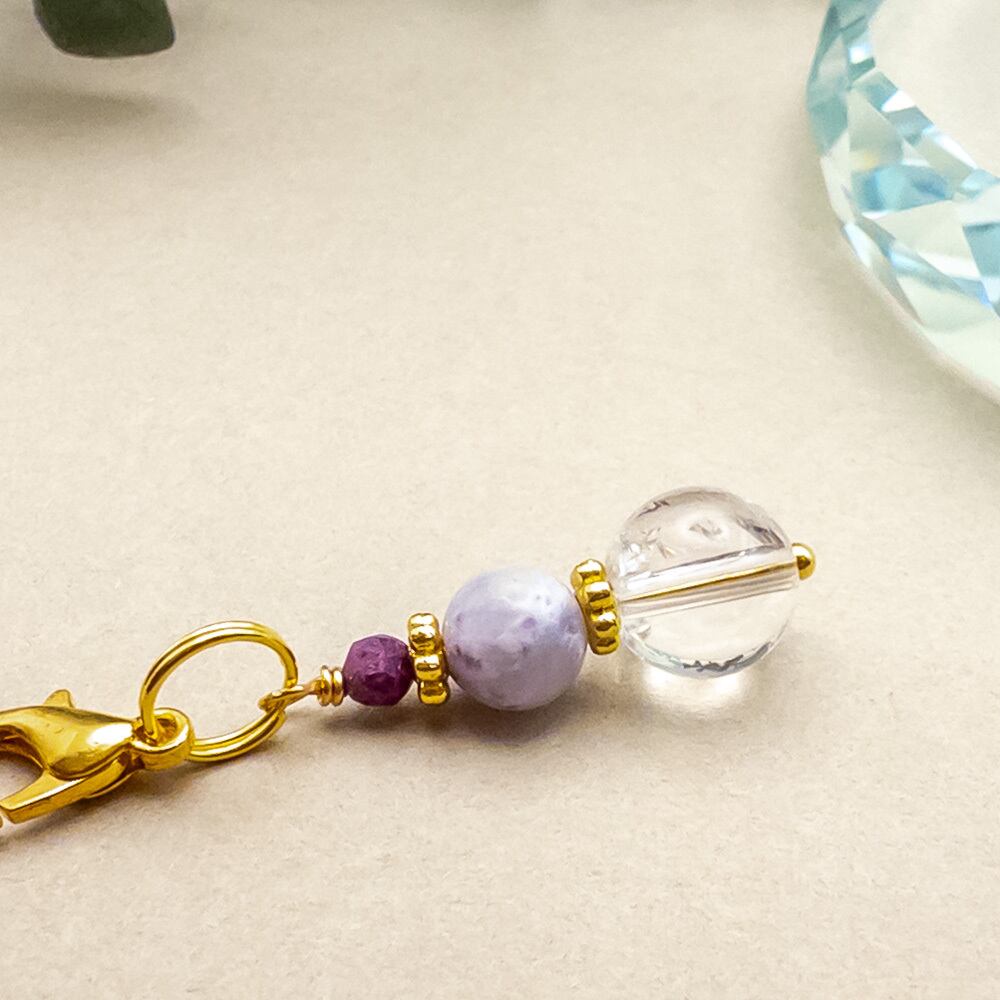 ティファニーストーン アイリスクォーツ ルビー チャーム イヤホンジャック 携帯ストラップ変更可 c-362s