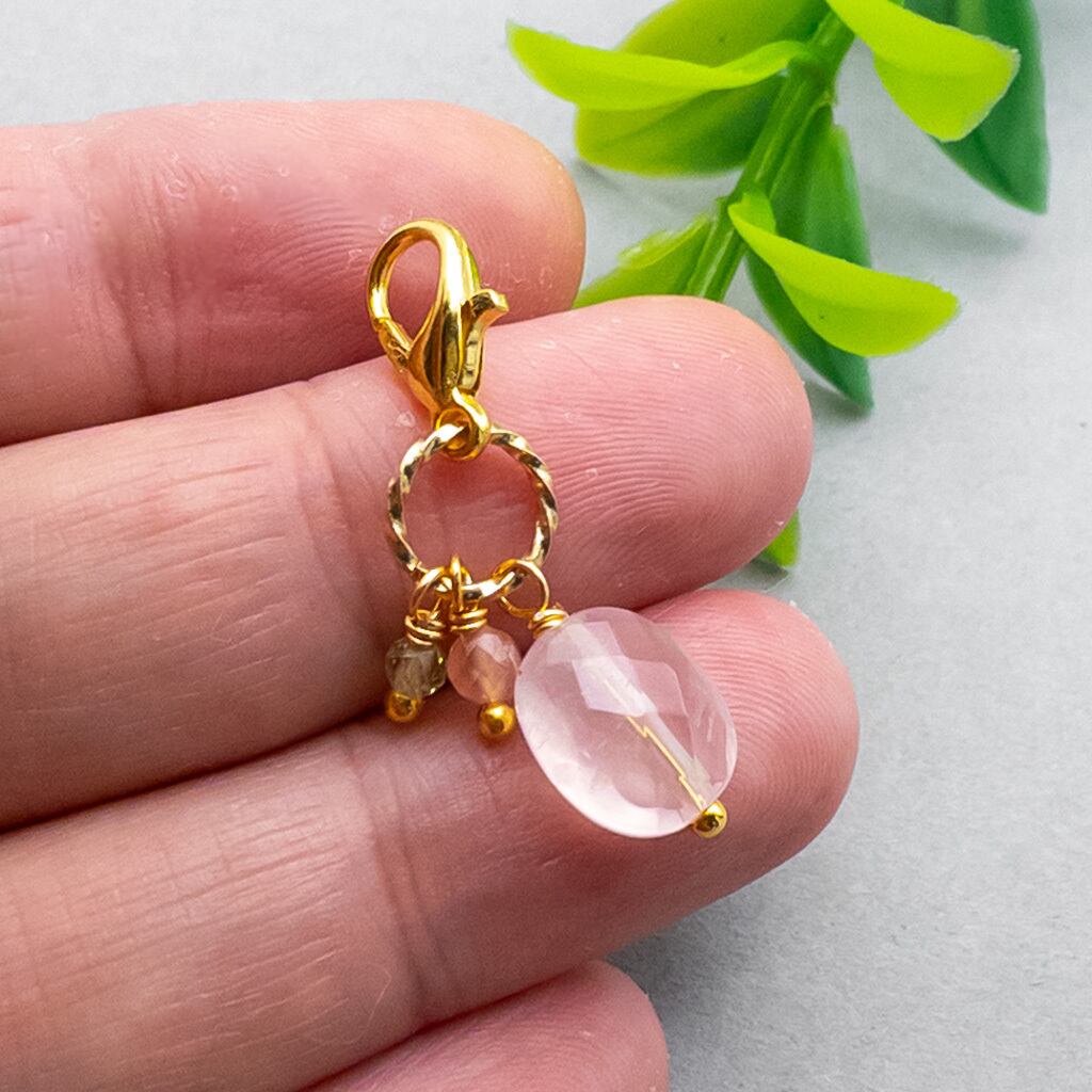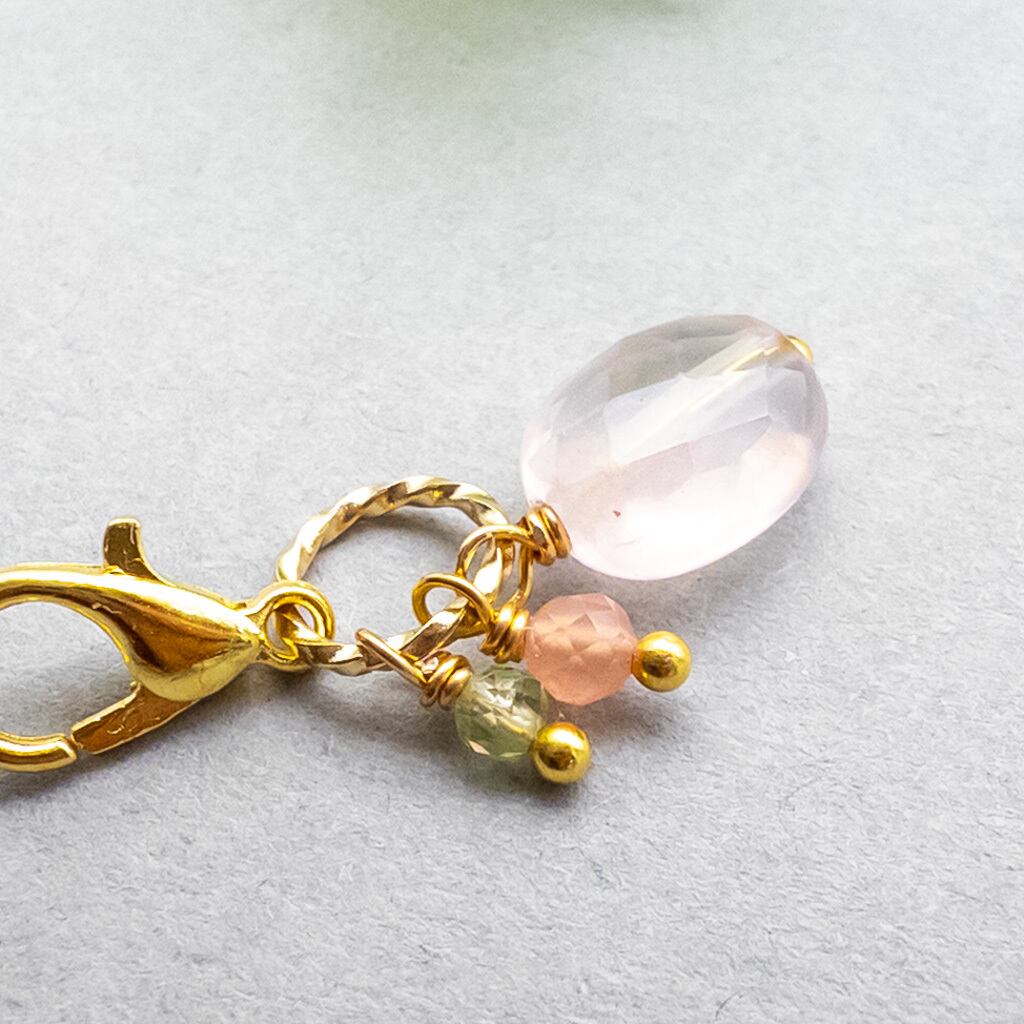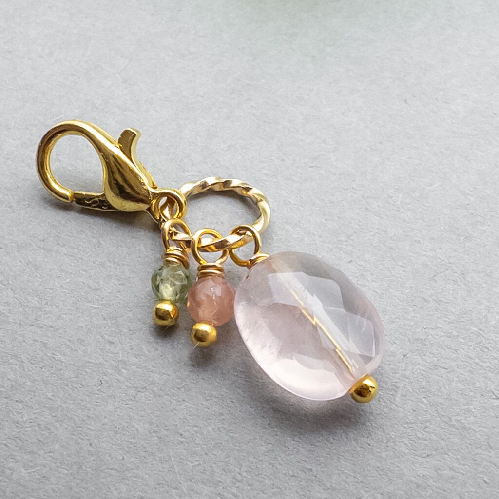 ローズクォーツ インカローズ ペリドット チャーム イヤホンジャックやストラップ変更可 c-361s