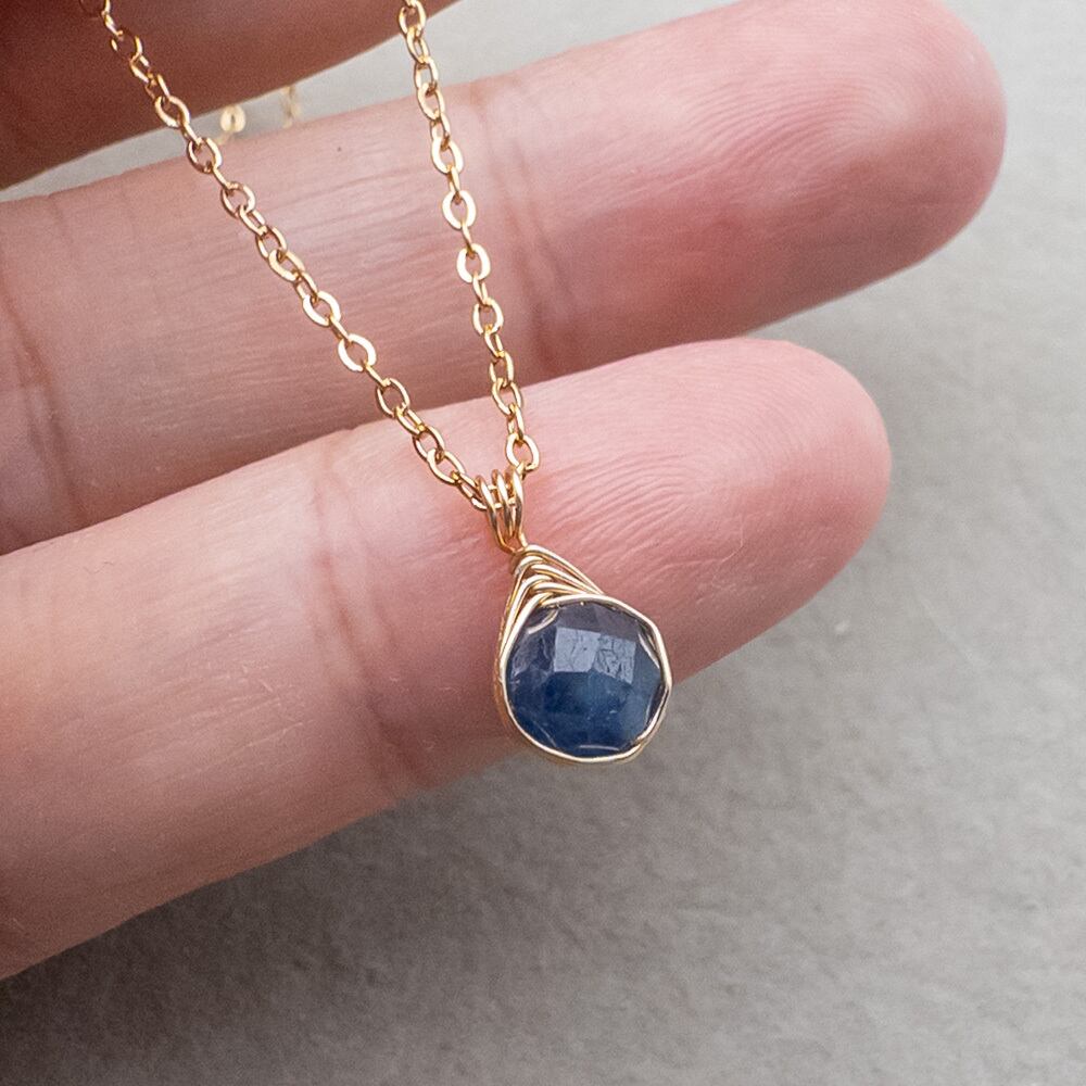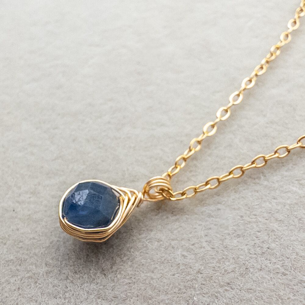 スリランカ産 サファイア ペンダント ネックレス クォーツ ステンレス ワイヤーラッピング p081s2