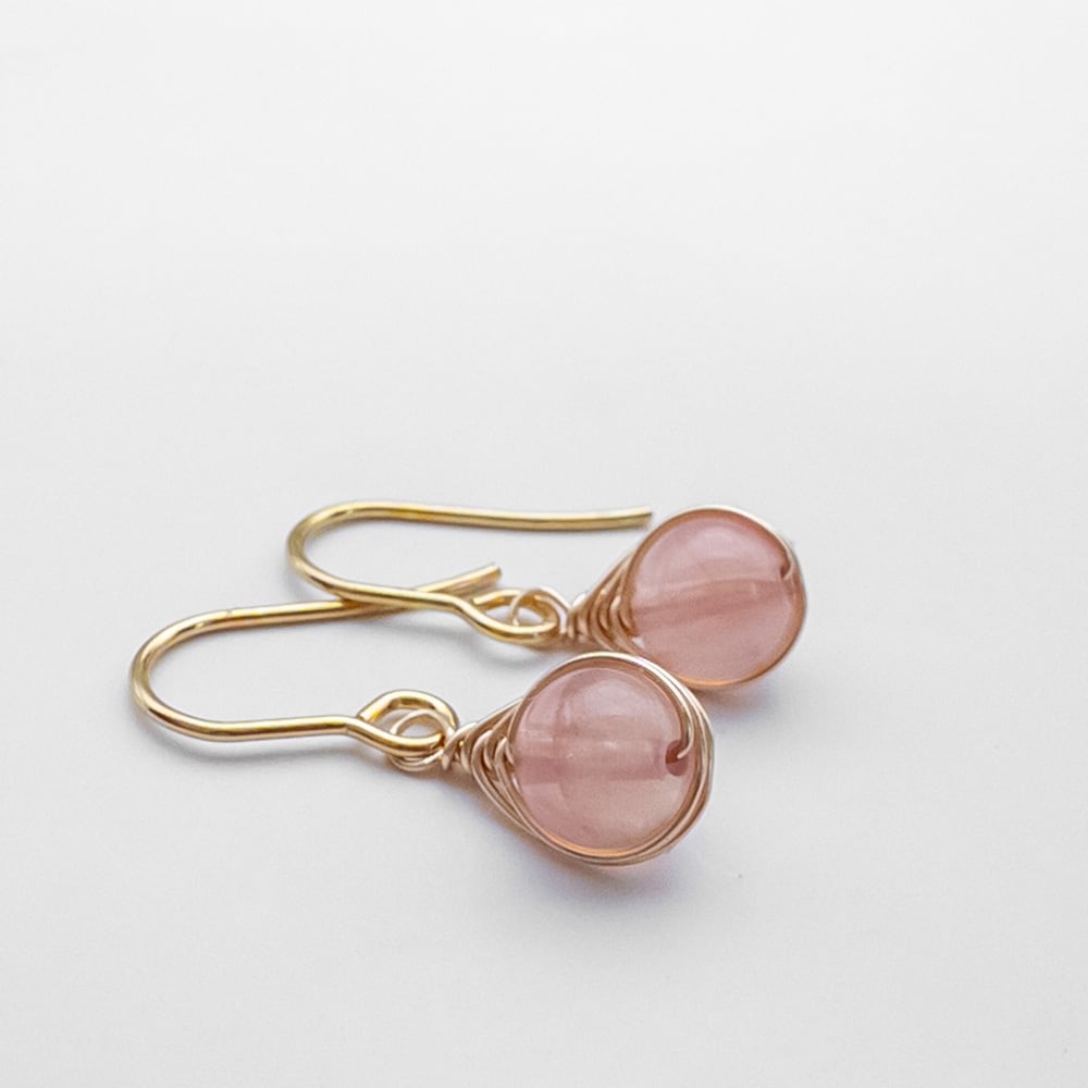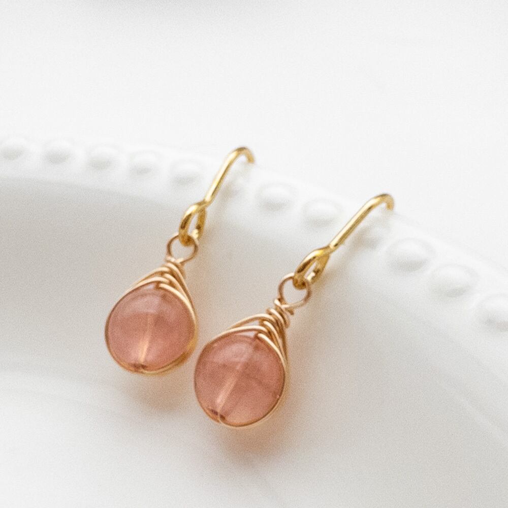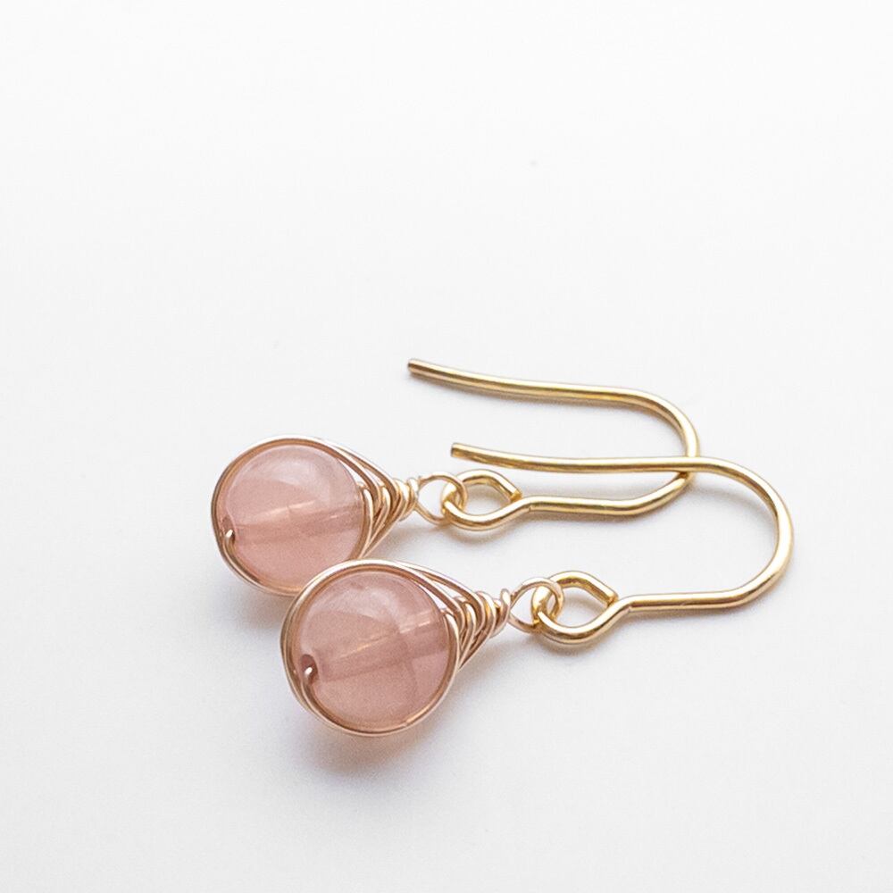 小さな ディープカラー ローズクォーツ ピアス ステンレス ワイヤーラッピング K14GF変更可能 em024s2
