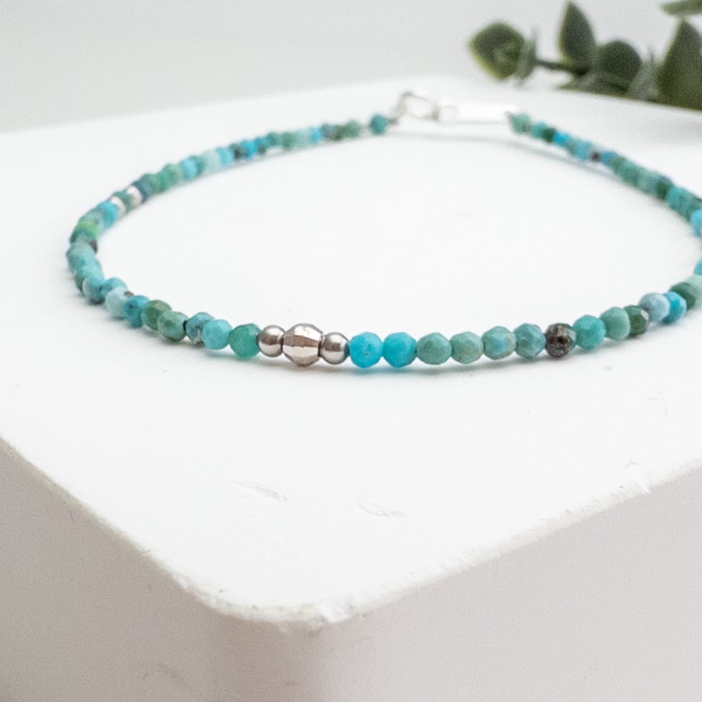 2mmの小さな天然ターコイズの華奢ブレスレットです