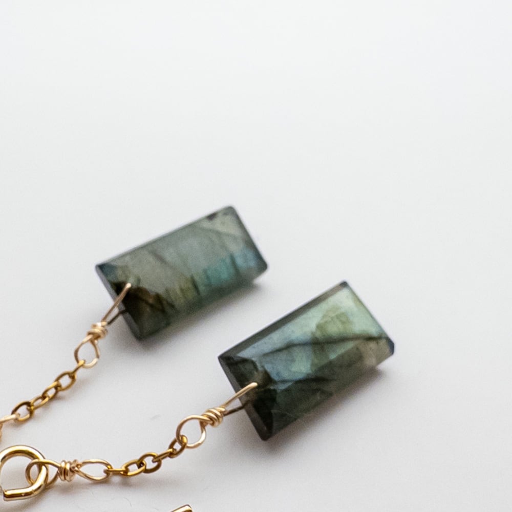 ラブラドライトの冷たく美しい輝きは、果てしない宇宙を思わせます。