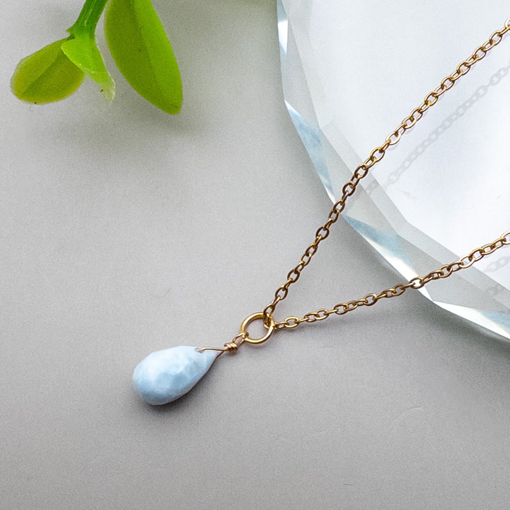 ドミニカ産 ラリマー ペンダント ステンレス シンプル ネックレス 天然石 p045s4