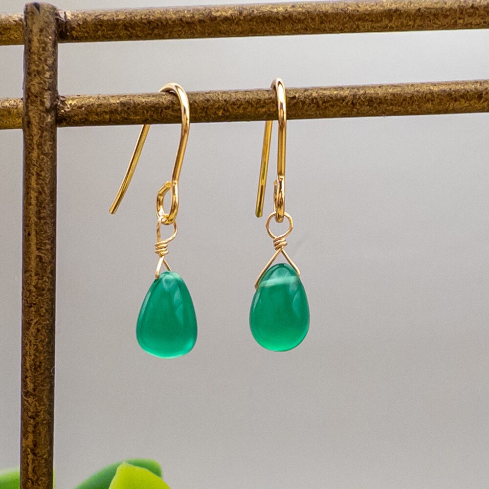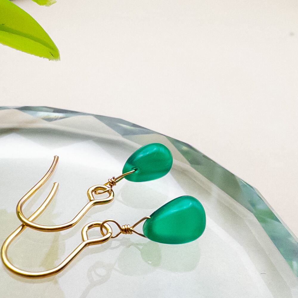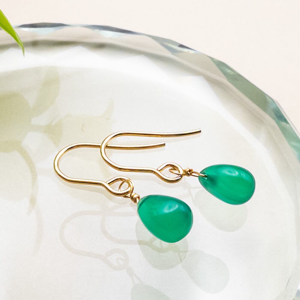 *冬SALE* ちょこんと グリーンオニキス ピアス ステンレス フックピアス K14GF変更可能 ac-166s7