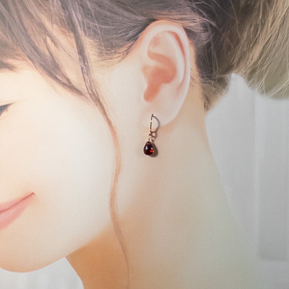 モザンビーク産 宝石質 ガーネット ピアス *Solta* K18GP フックピアス K14GF変更可 so009s5