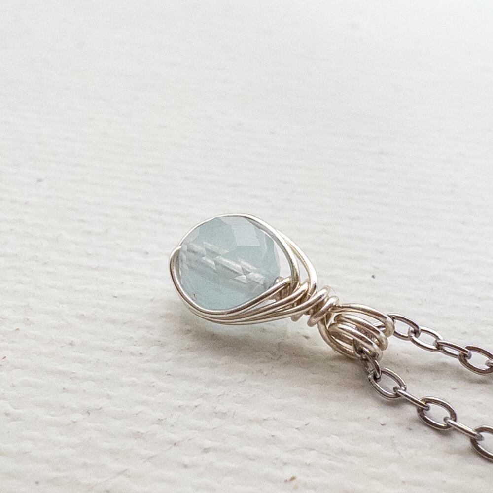 小さな アクアマリン ペンダント ネックレス ステンレス ワイヤーラッピング p108s