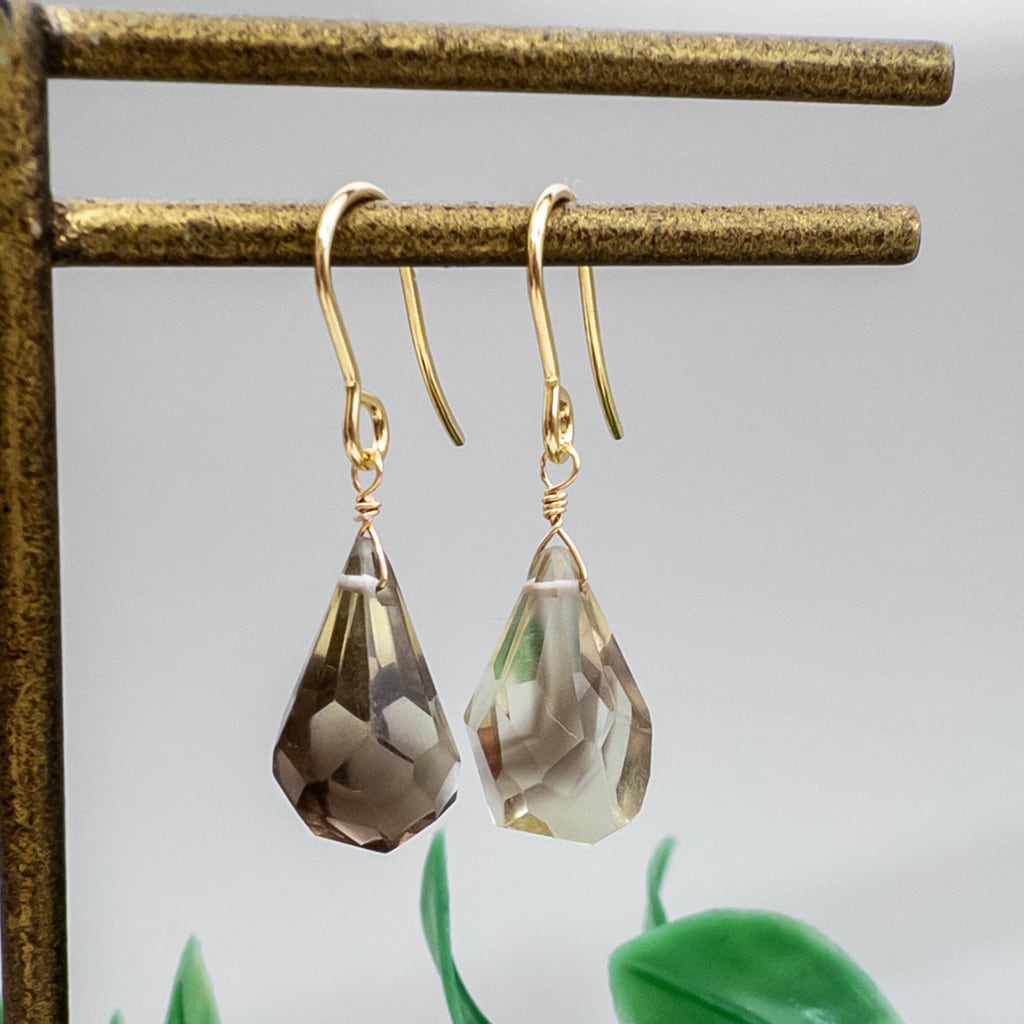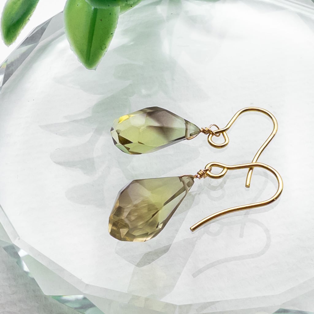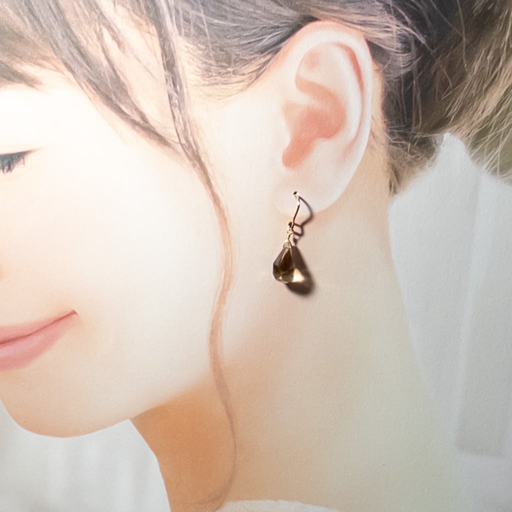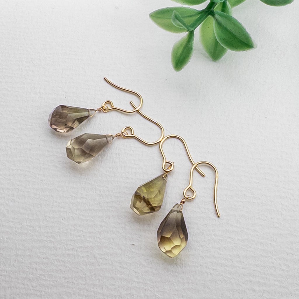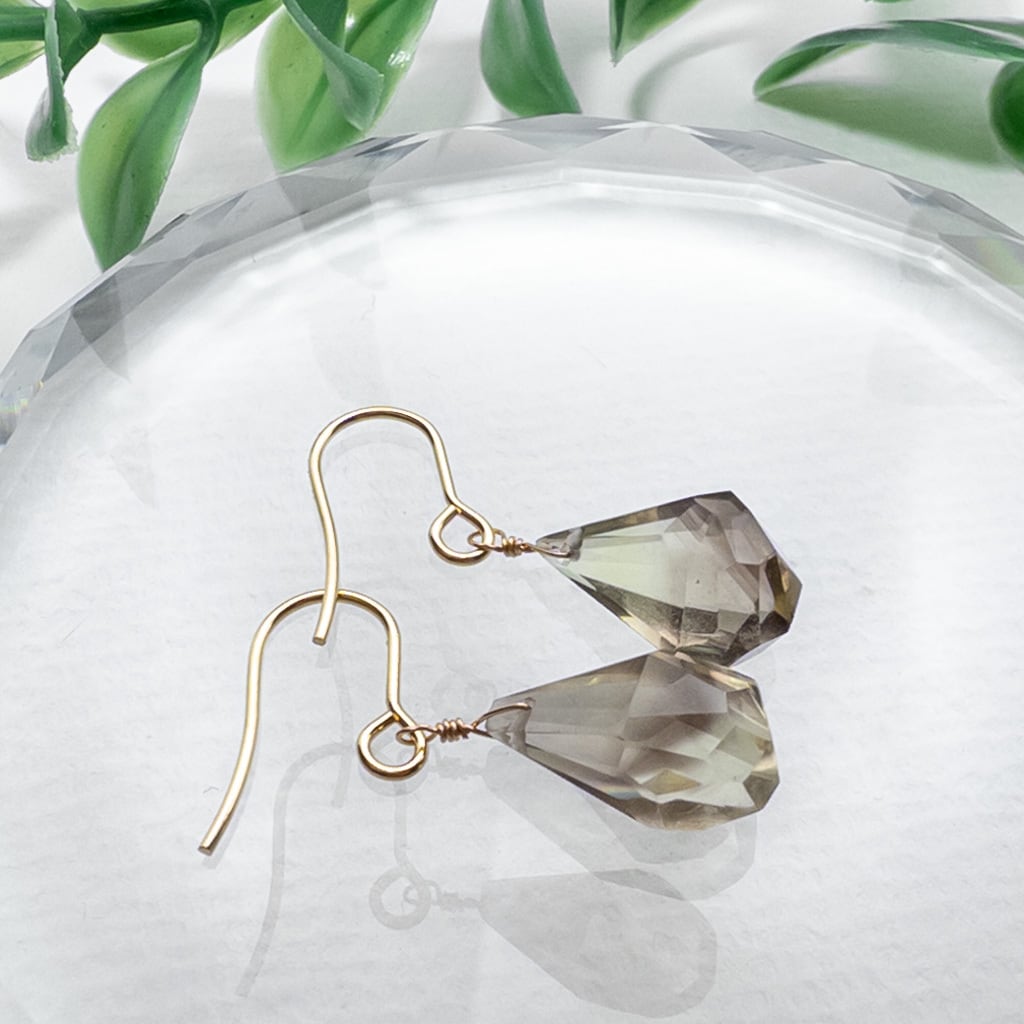 バイカラー レモン×スモーキークォーツ ピアス ステンレス K14GF変更可 フックピアス ac-091s9