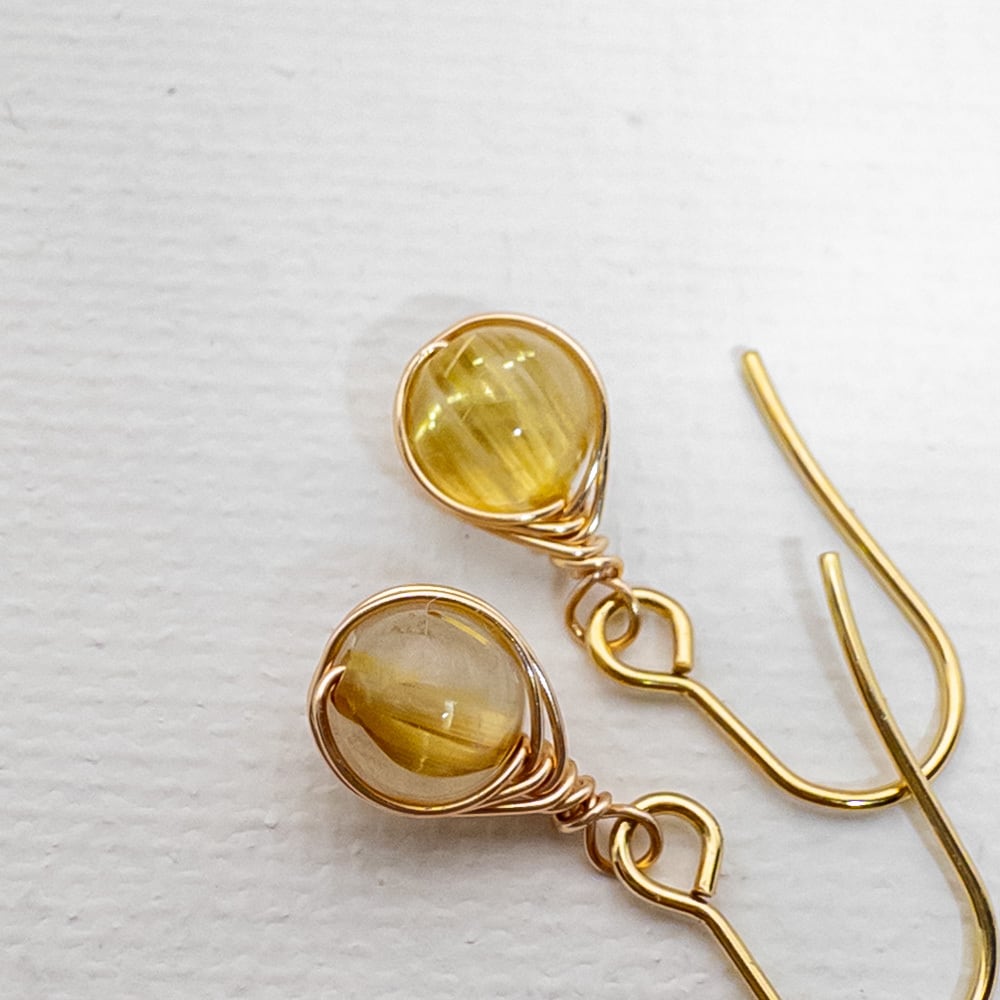 小さな 高品質 ルチルクォーツ ピアス ステンレス ワイヤーラッピング K14GF変更可能 em061s5