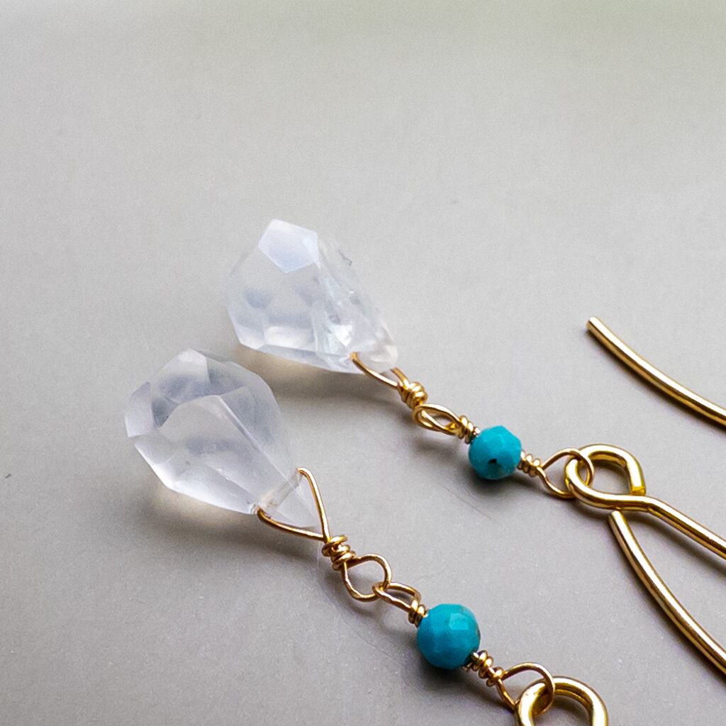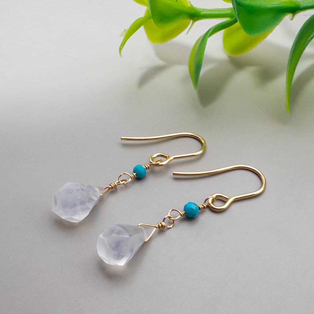 ヒマラヤ水晶 キングマンターコイズ ピアス フックピアス クォーツ K14GF変更可能 ac-216s2