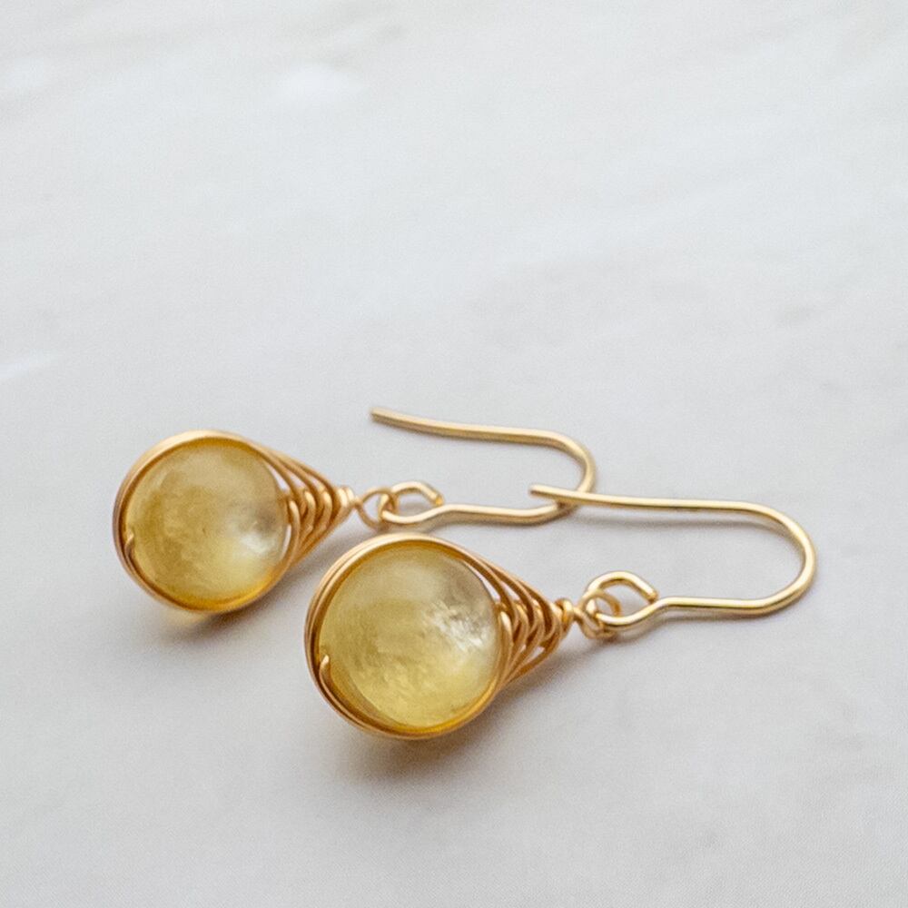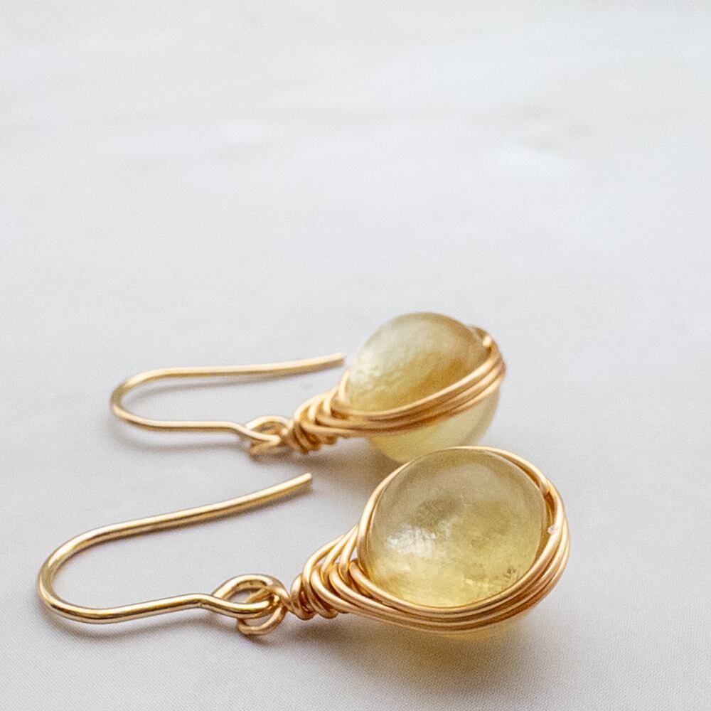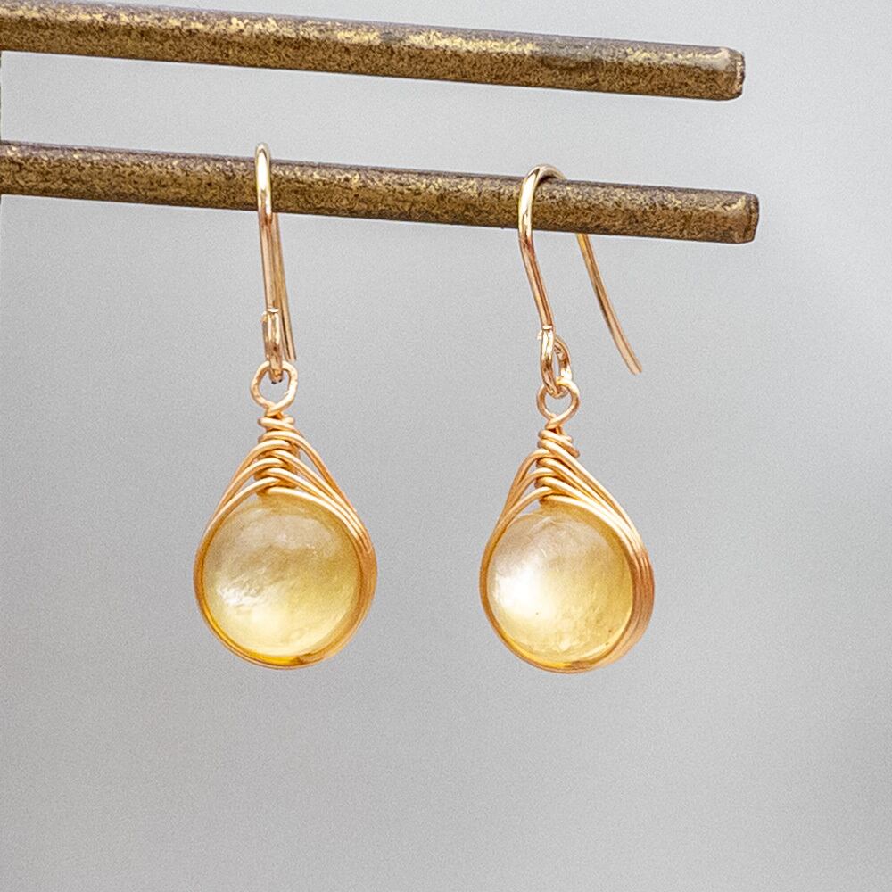 ゴールデンマイカをワイヤーで包みピアスに