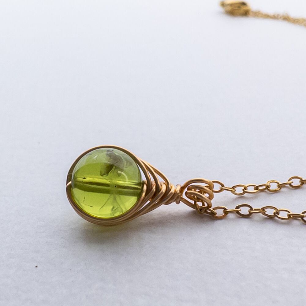 内側の魅力をアップ ペリドット ペンダント ネックレス ステンレス ワイヤーラッピング p113s