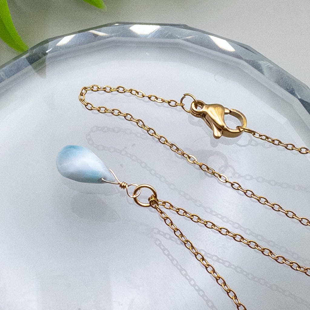 ドミニカ産 ラリマー ペンダント ステンレス シンプル ネックレス 天然石 p145s4