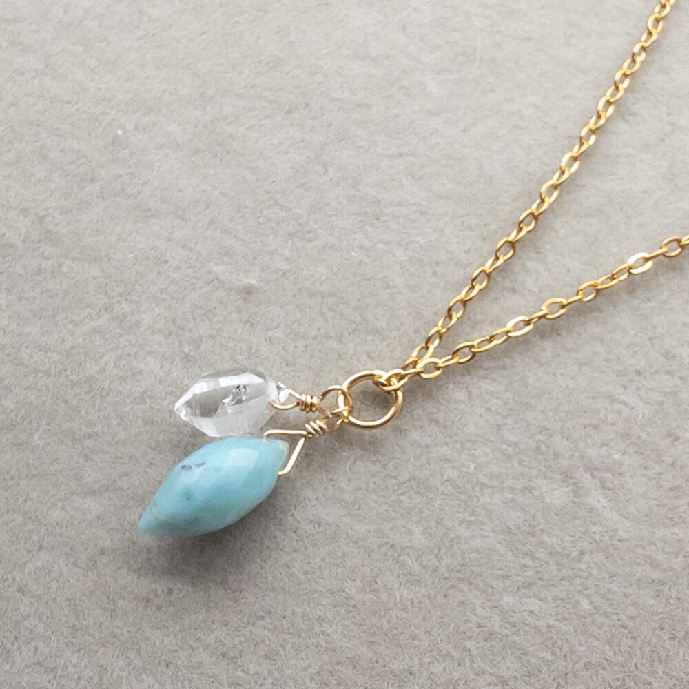 漣を閉じ込めた ラリマー ハーキマーダイヤモンド ペンダント ネックレス ステンレス p146s3