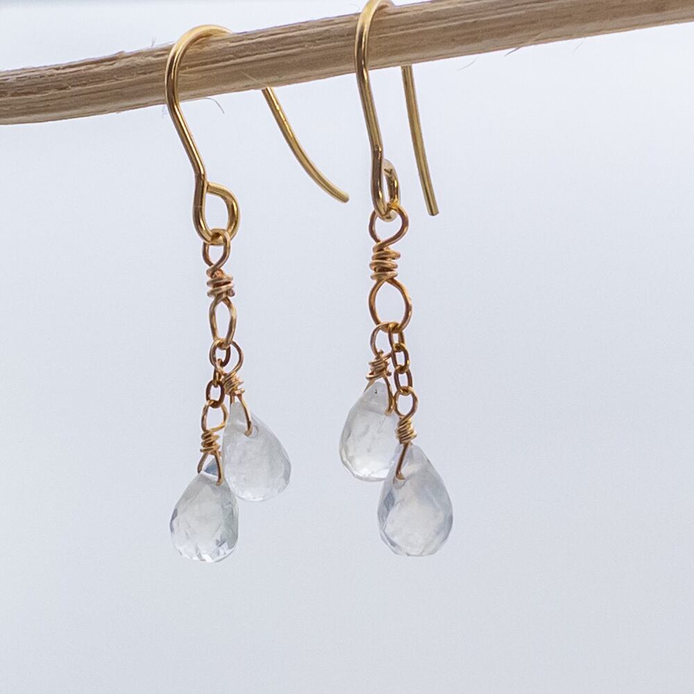 宝石質 ブルームーンストーン ピアス ドロップ *fiore* ステンレス K14GF変更可能 fi100