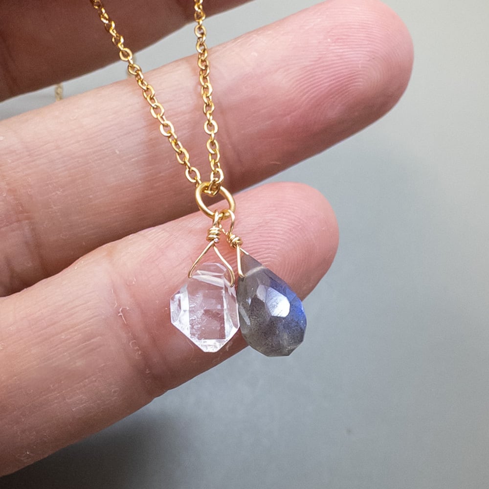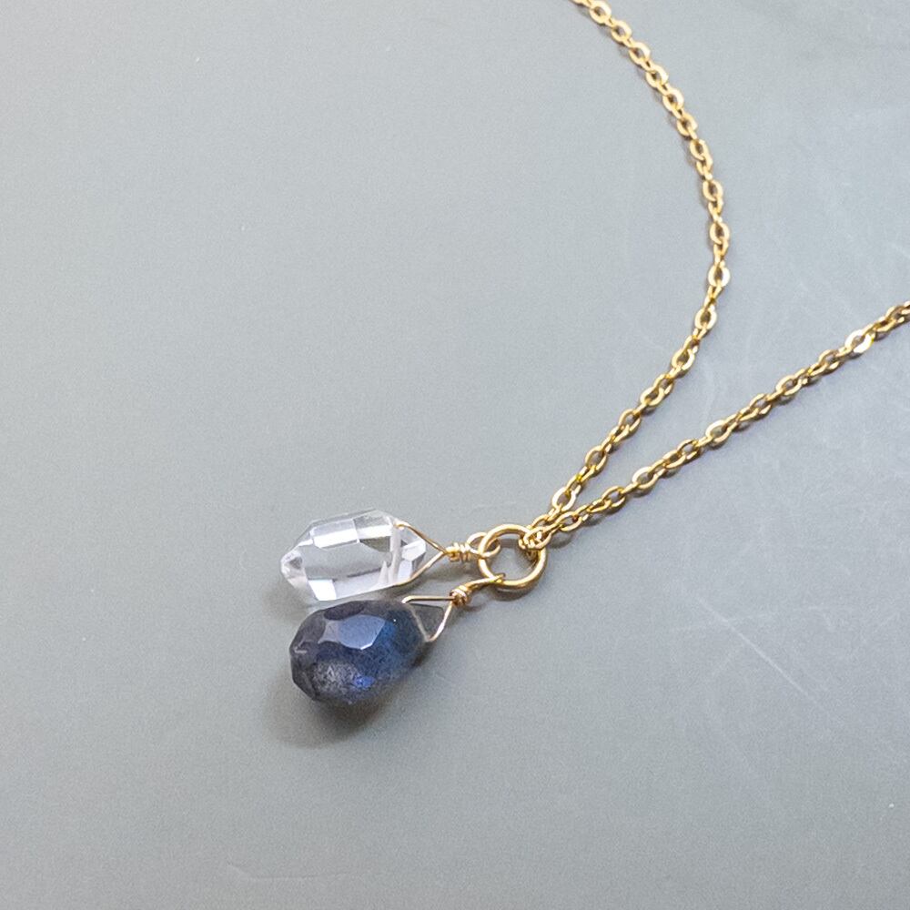 ラブラドライト ハーキマーダイヤモンド ペンダント *fiore* ステンレス ネックレス fi102s