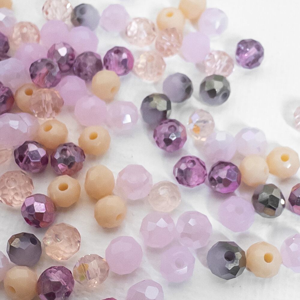 *25g* 約320個 ガラスビーズ 4x3mm MIXカラー モーヴ ピンク系 ロンデル bz244s