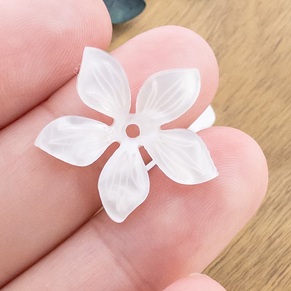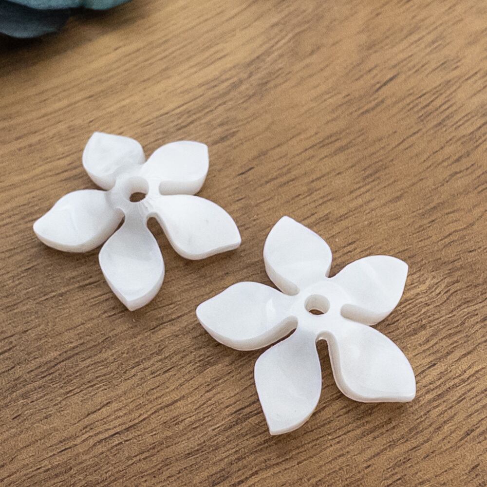 *5個* フラワー ビーズキャップ 20.5mm ホワイト フラワーキャップ セルロース 樹脂 花 パーツ bc077