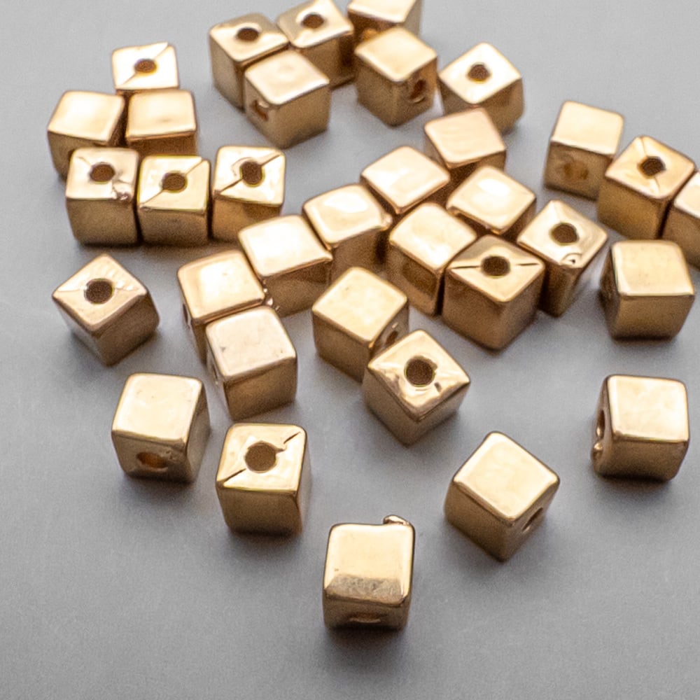 *100個* スペーサービーズ スクエア キューブ 約4mm KC金ゴールドカラー プラスチックビーズ bz054s