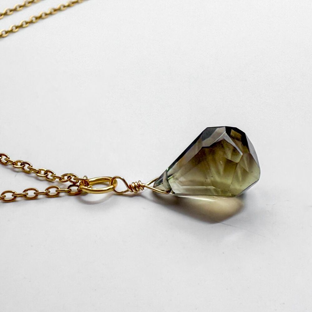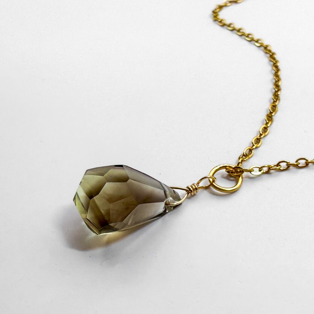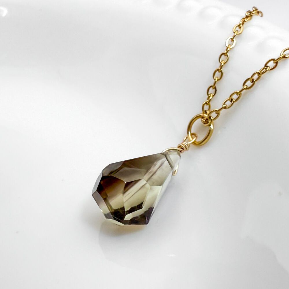 宝石質 バイカラー レモン × スモーキークォーツ ペンダント ネックレス ステンレス p004s9