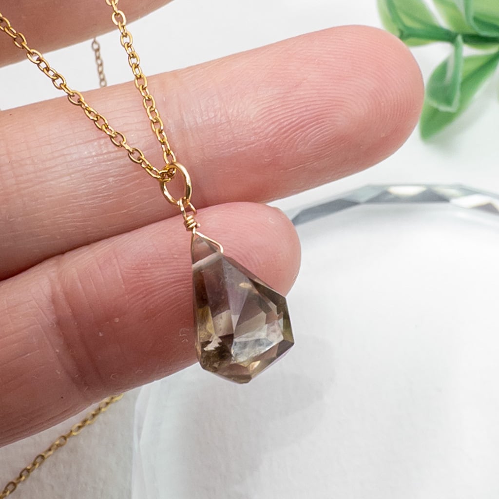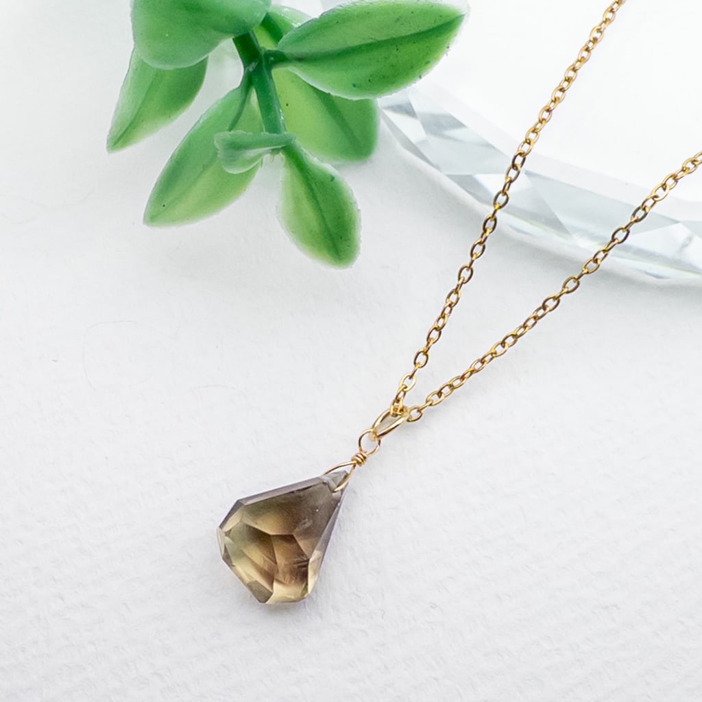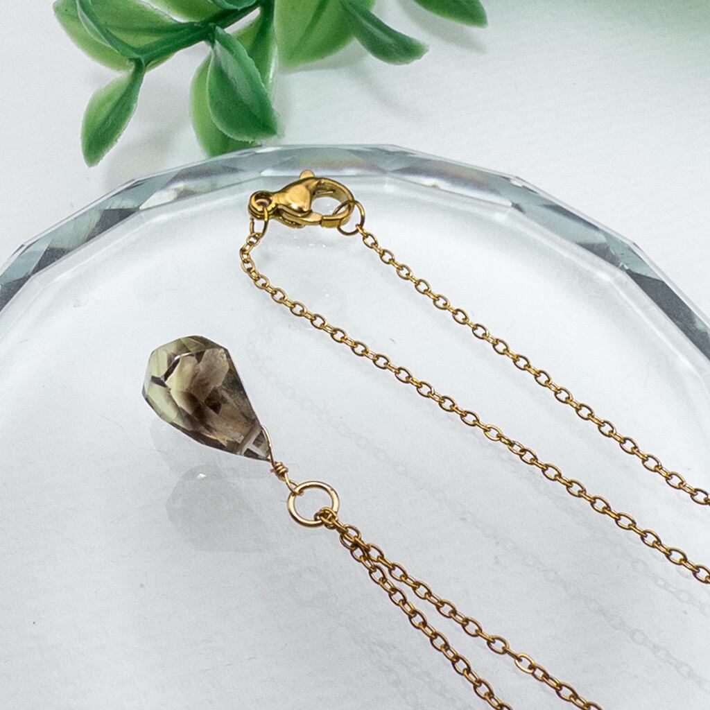 宝石質 バイカラー レモン × スモーキークォーツ ペンダント ネックレス ステンレス p004s12