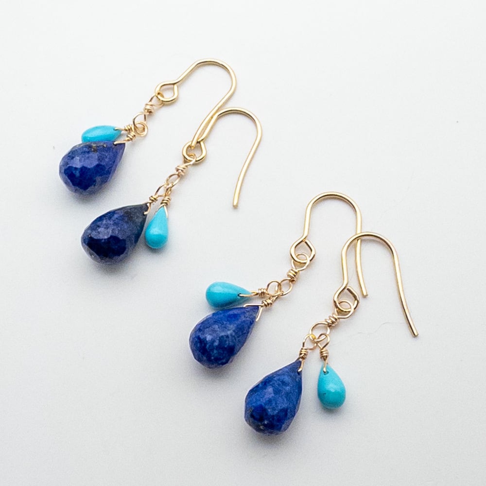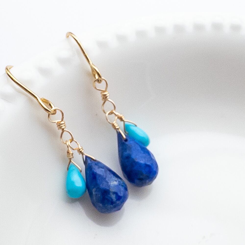 ラピスラズリ キングマンターコイズ ピアス ステンレス フックピアス ターコイズ K14GF変更可能 ac234s5