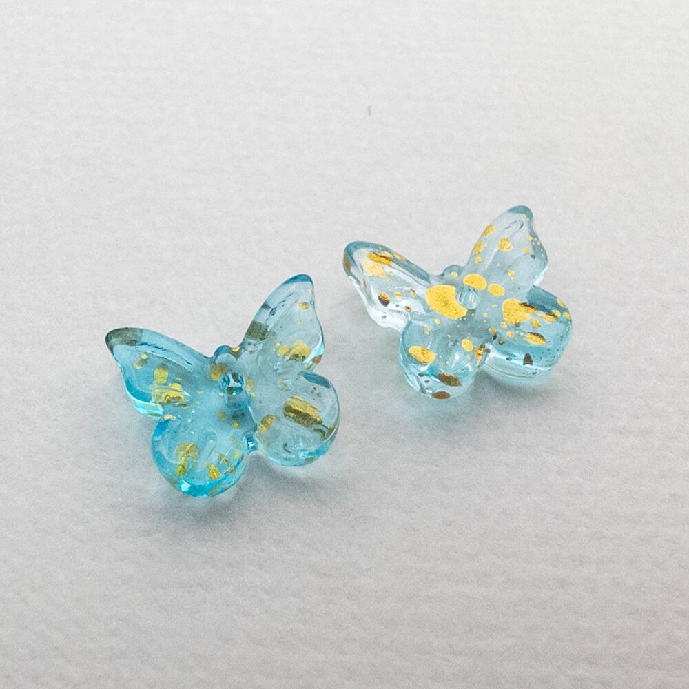 *15個* 蝶 ガラスビーズ 9.5x11mm ターコイズ ちょうちょ スプレー塗装 ビーズ bz255s