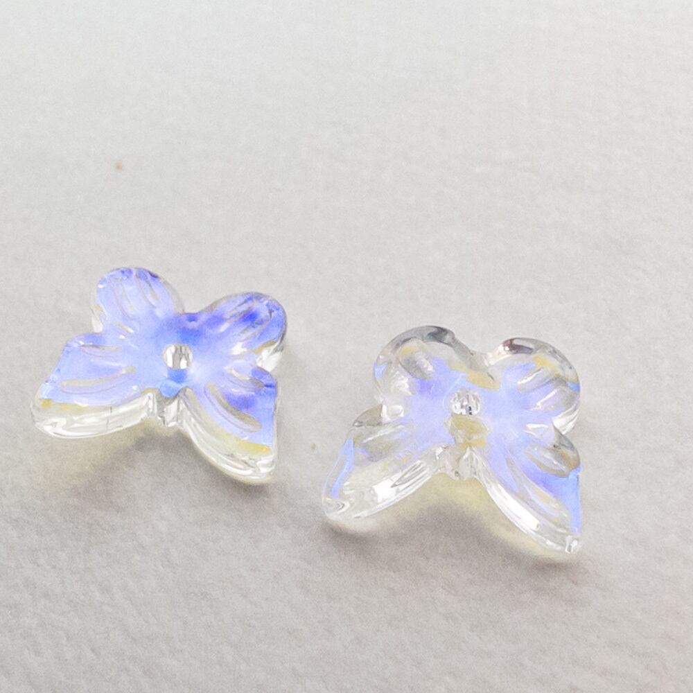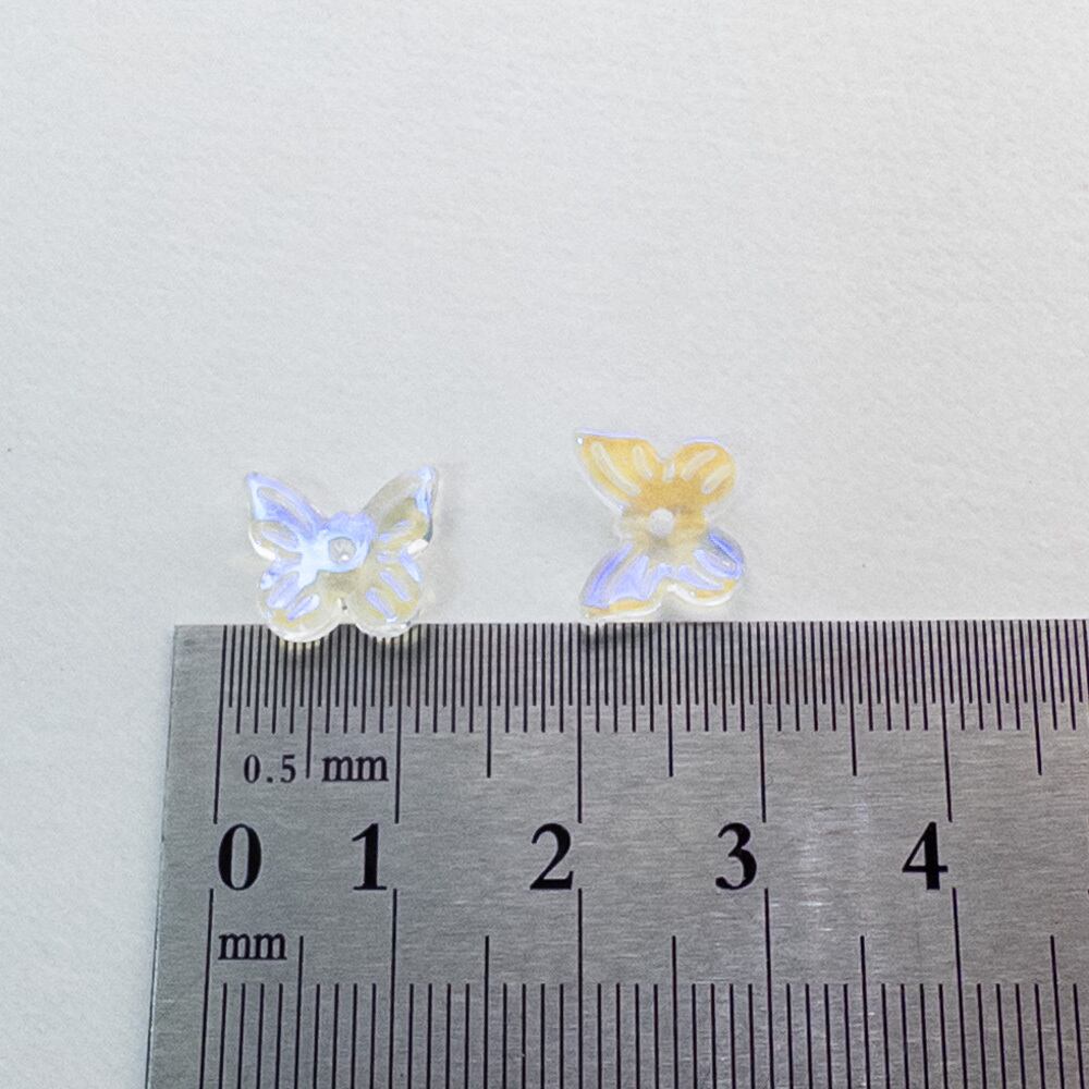 *15個* 蝶 ガラスビーズ 9.5x11mm クリアAB ちょうちょ スプレー塗装 ビーズ bz250s