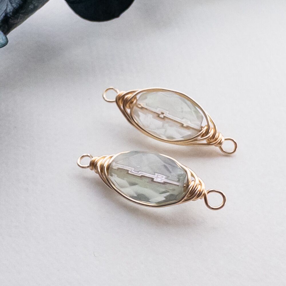 *1個* 天然石 パーツ フローライト ワイヤーラッピング コネクター 金 te002