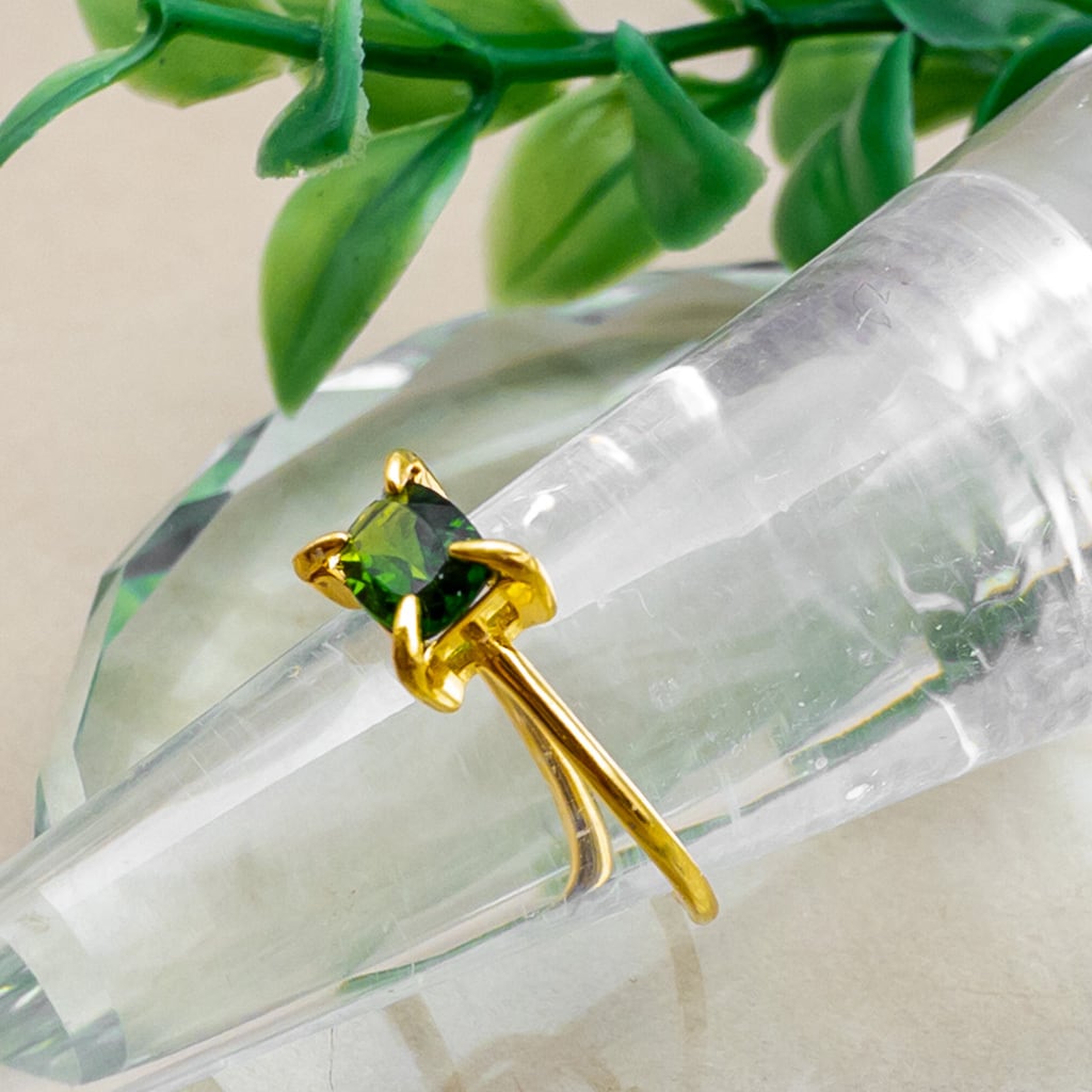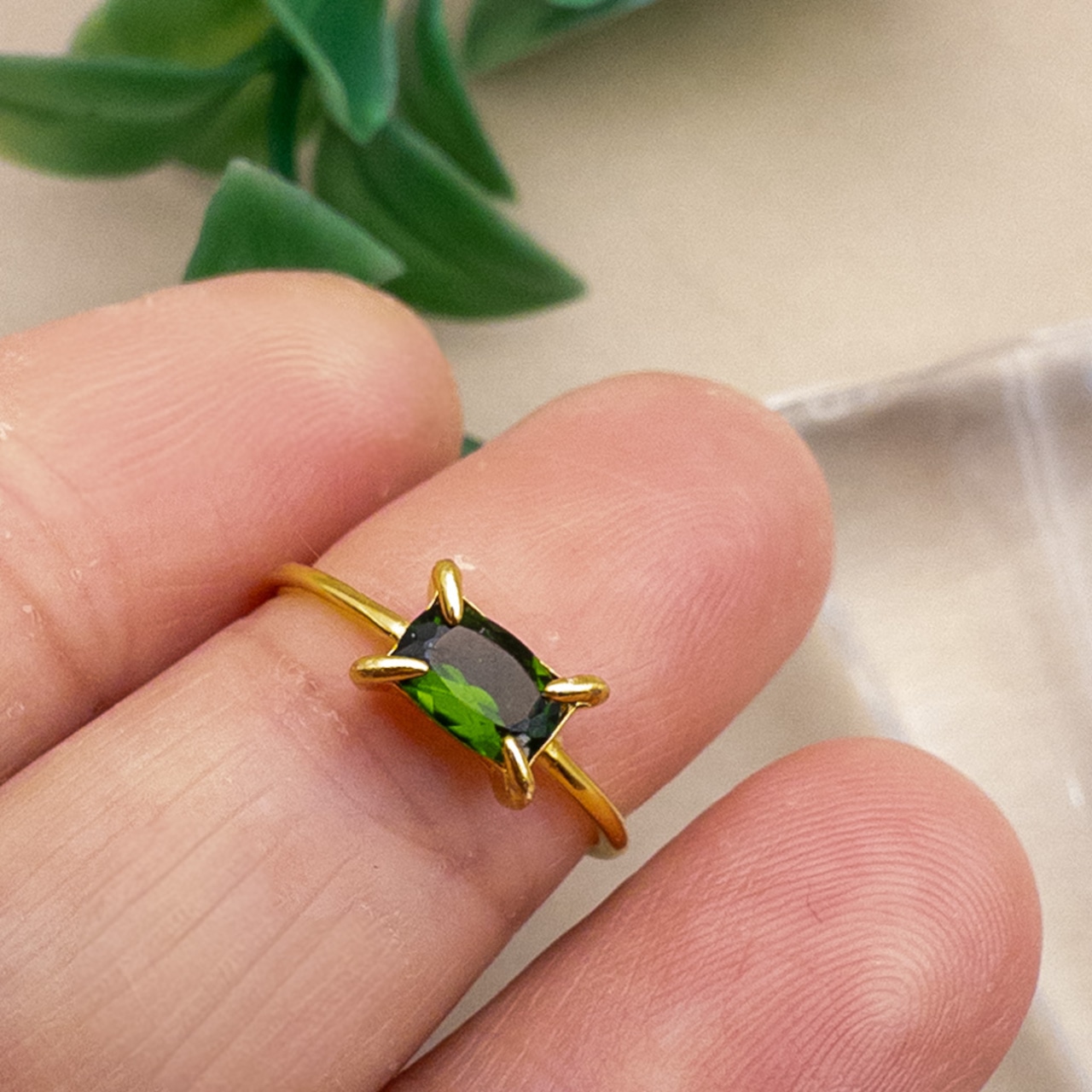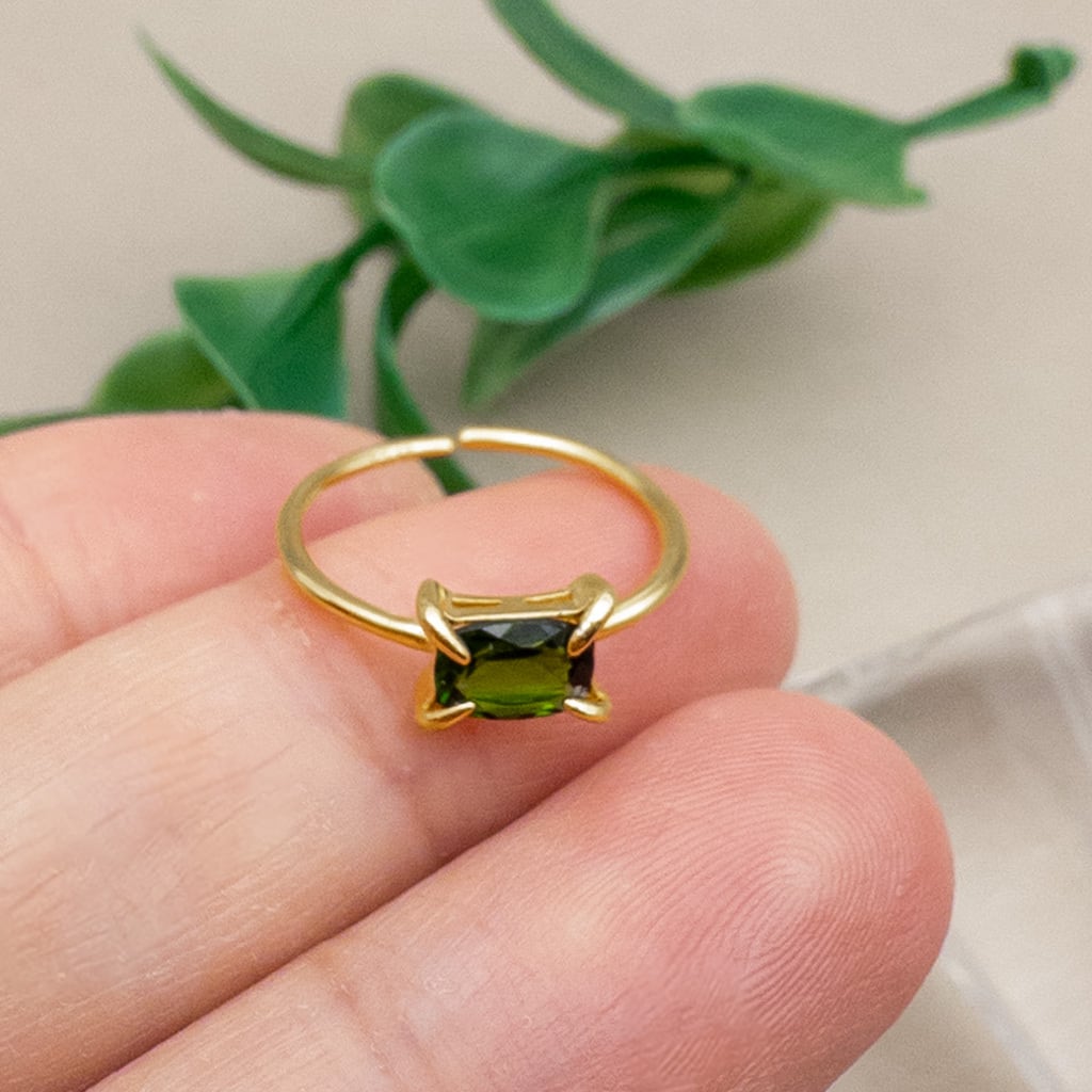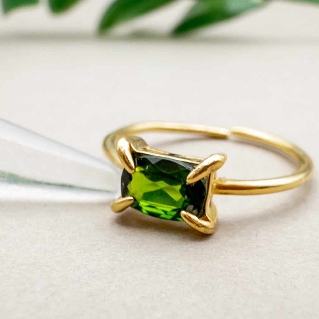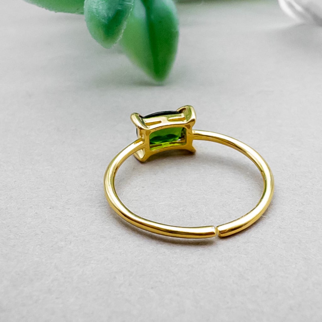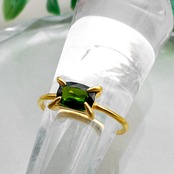 クロムダイオプサイド リング 華奢 指輪 SV925 レクタングル 天然石 フリーサイズ ピンキーリング r032s