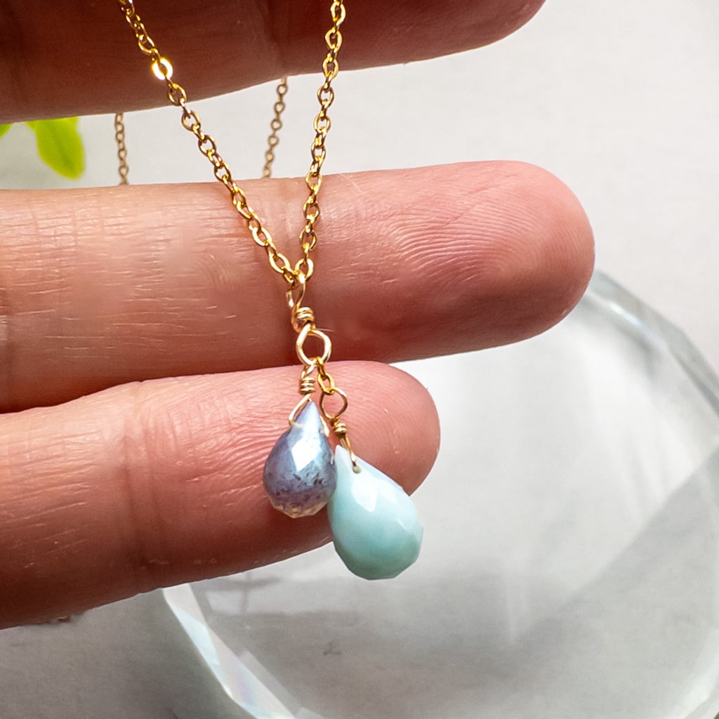 夜空を連想させるラブラドライトを合わせた青のペンダント
