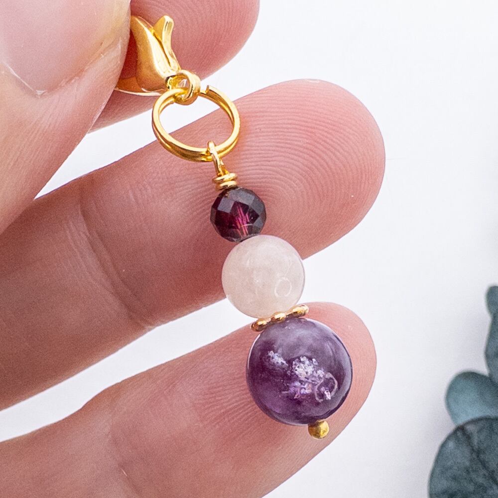 新しい自分に レピドライト モルガナイト ガーネット チャーム イヤホンジャック ストラップ パーツ変更可 c-320s