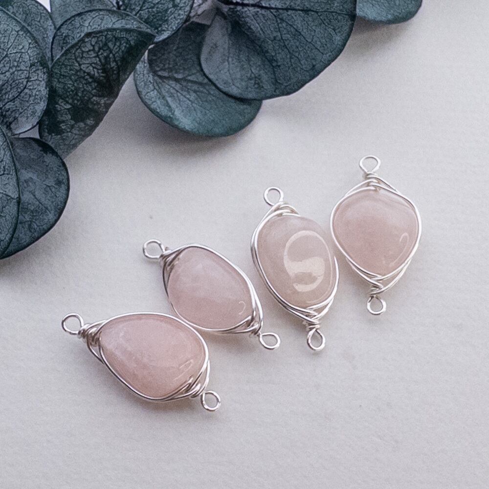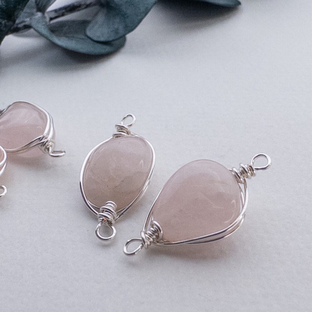 *1個* 天然石 パーツ モルガナイト ワイヤーラッピング コネクター チャーム 銀 ワイヤー巻き te031