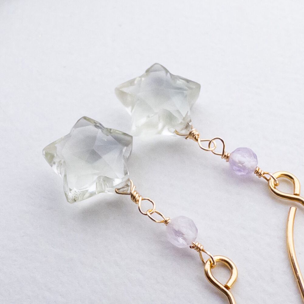 穏やかな日々 グリーンアメジスト ラベンダーアメジスト スター ピアス ステンレス 14GF変更可能 ac251