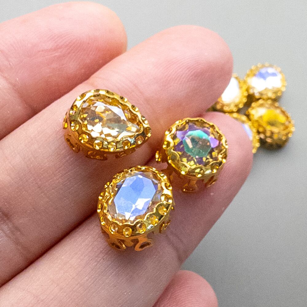 売り切りSALE【15個】ガラス ラインストーン アソート 台座付き 縫い付け ビジュー wp03s