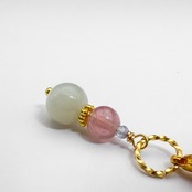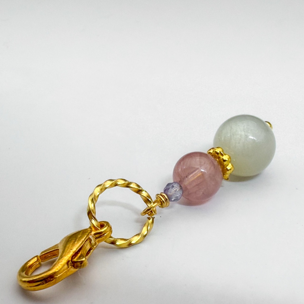 ディープカラー ローズクォーツ ムーンストーン チャーム イヤホンジャック 携帯ストラップ 変更可 c-102s2