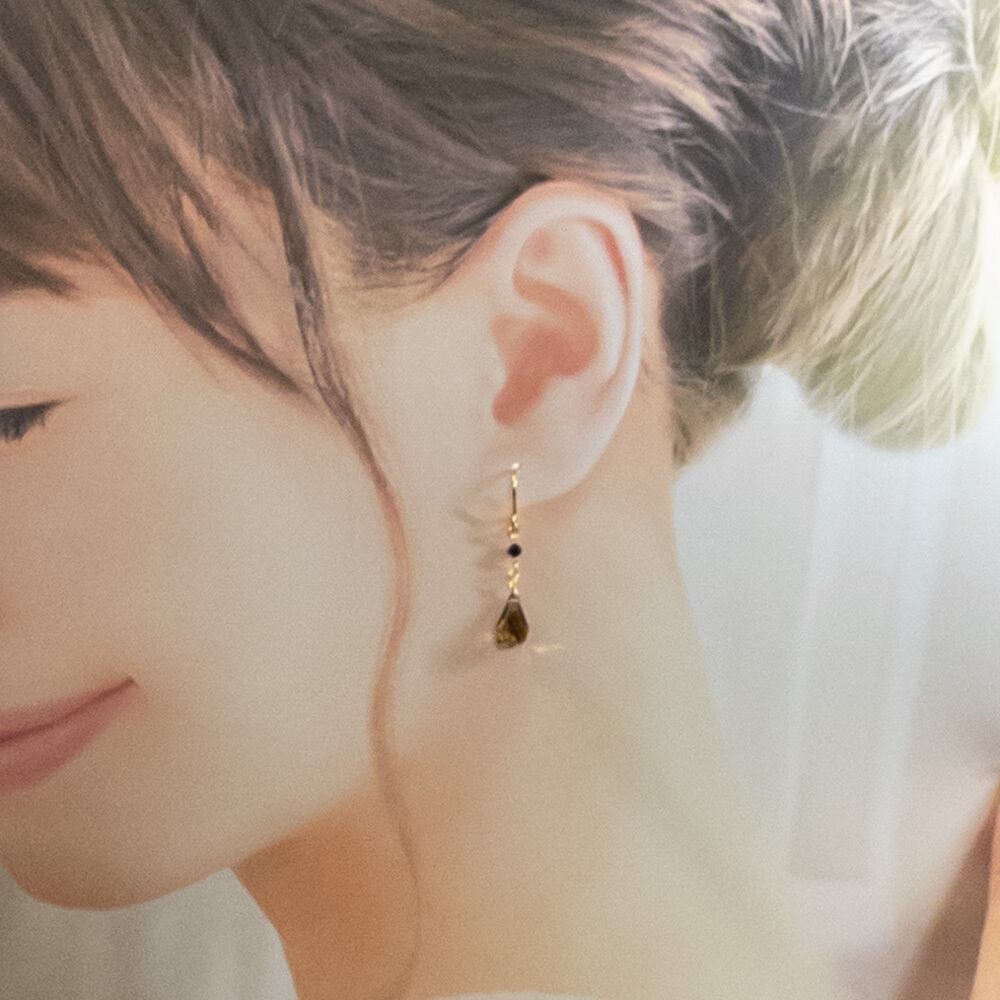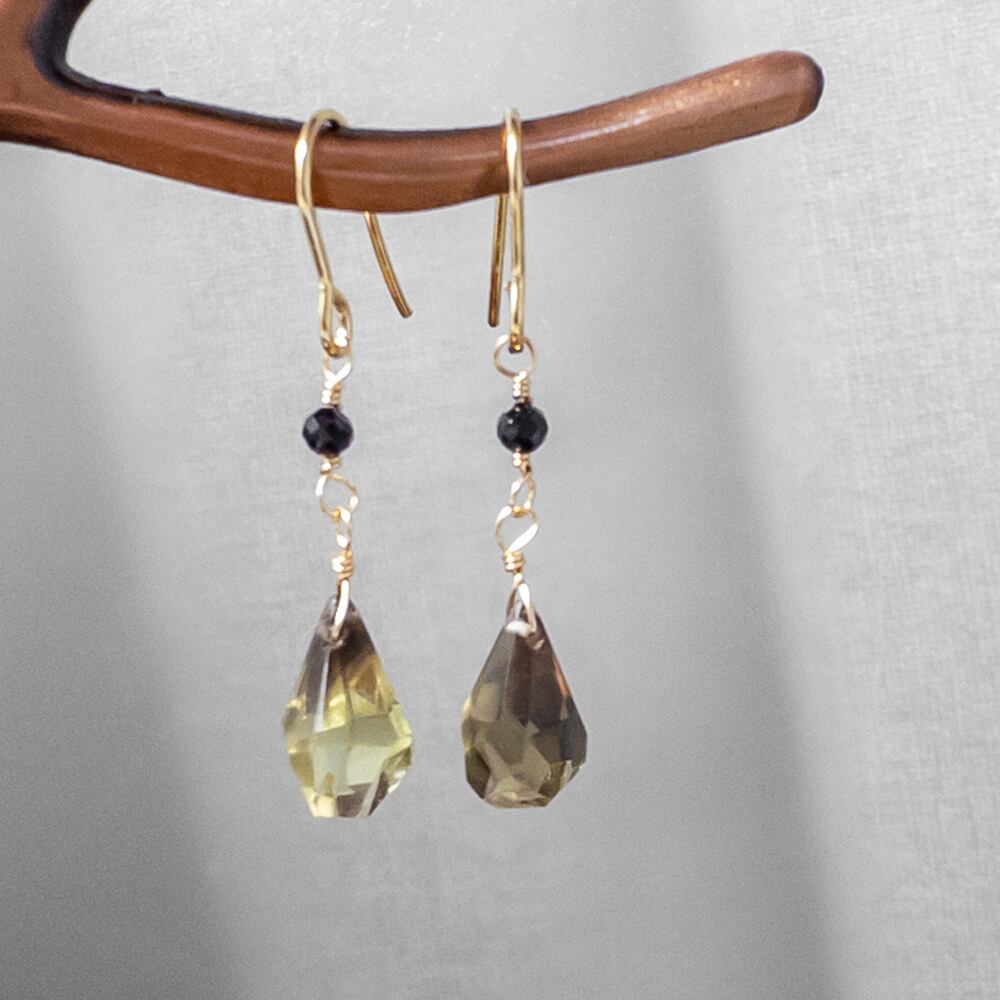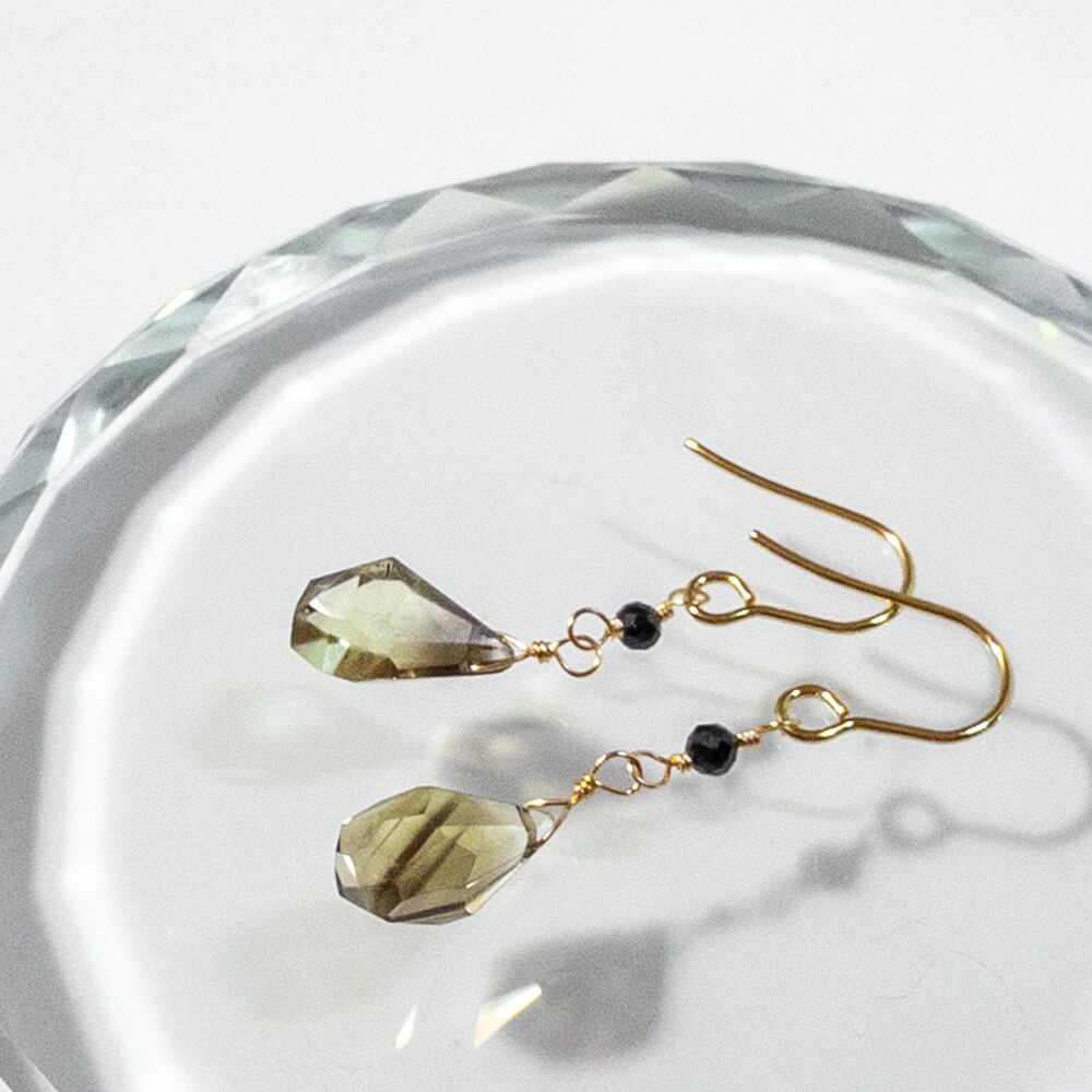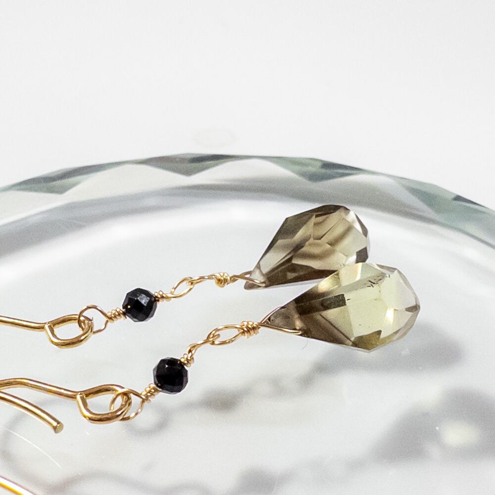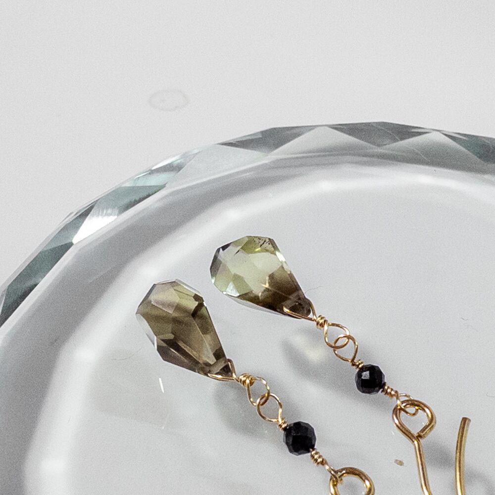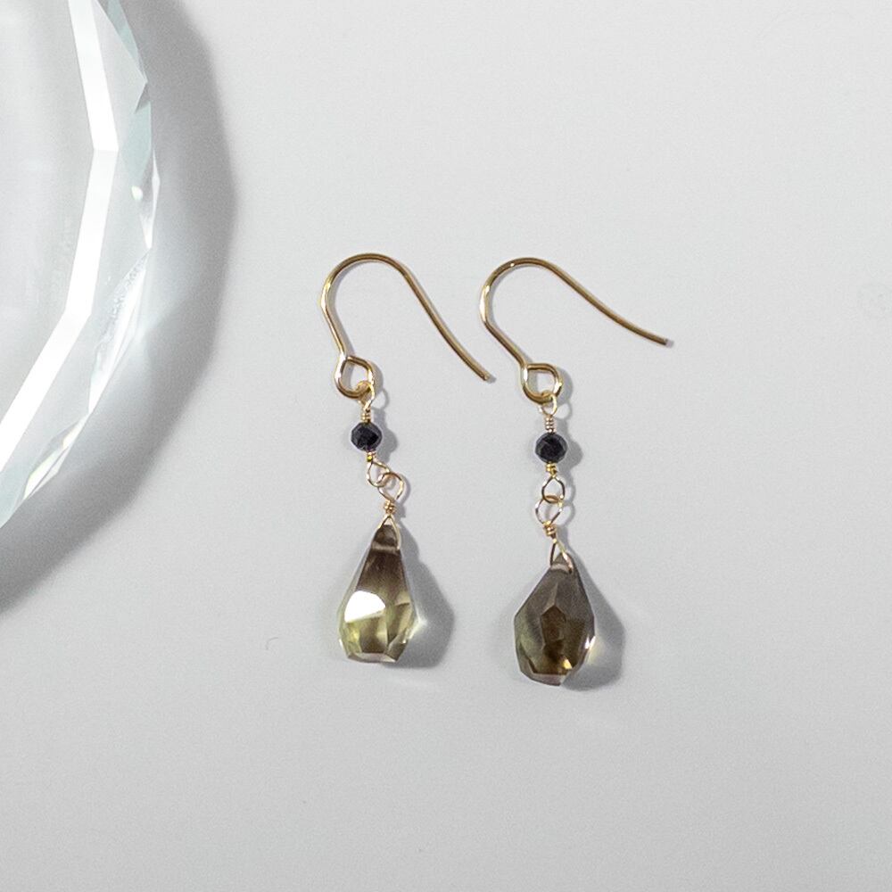 バイカラー レモン×スモーキークォーツ ブラックスピネル ピアス ステンレス K14GF変更可 ac253s8