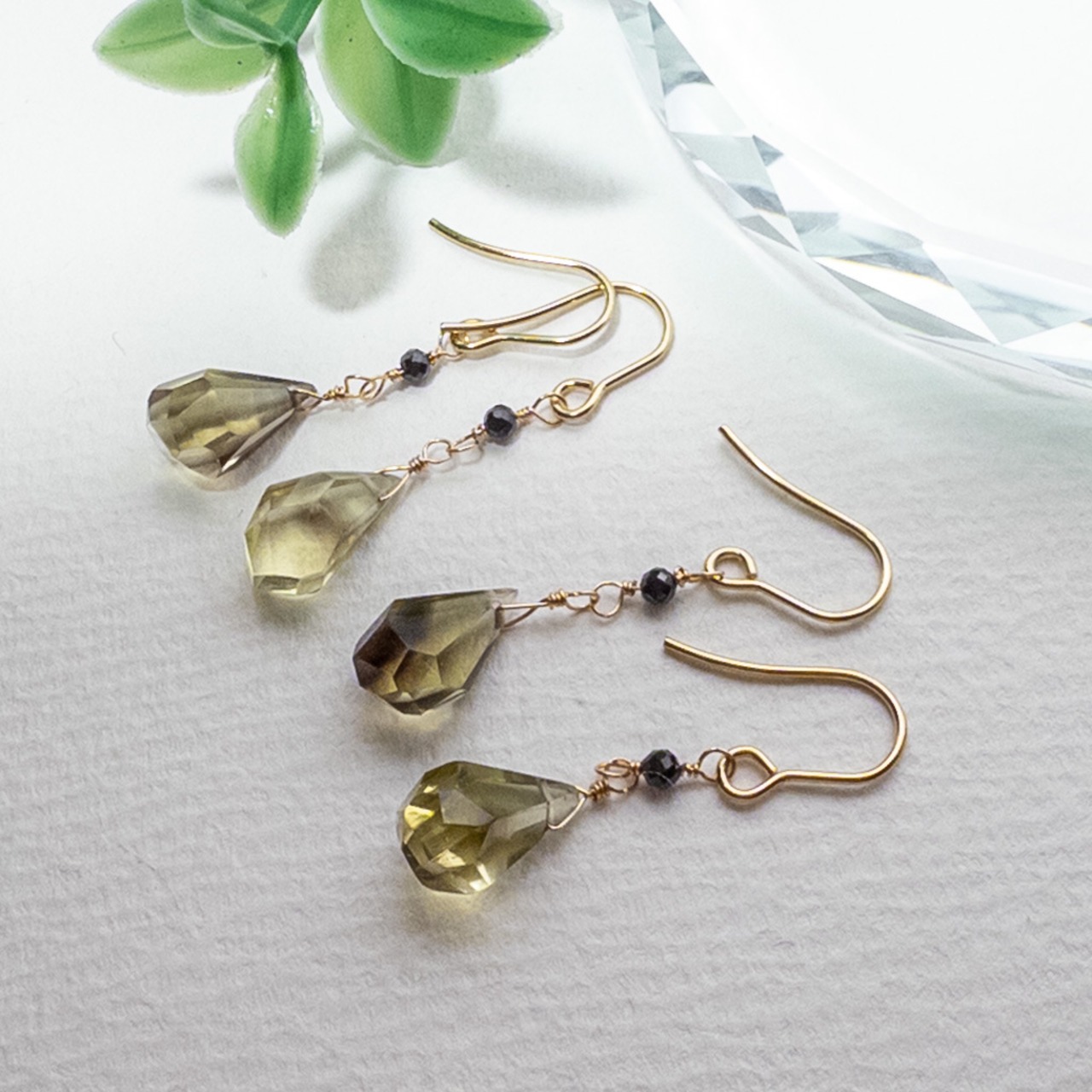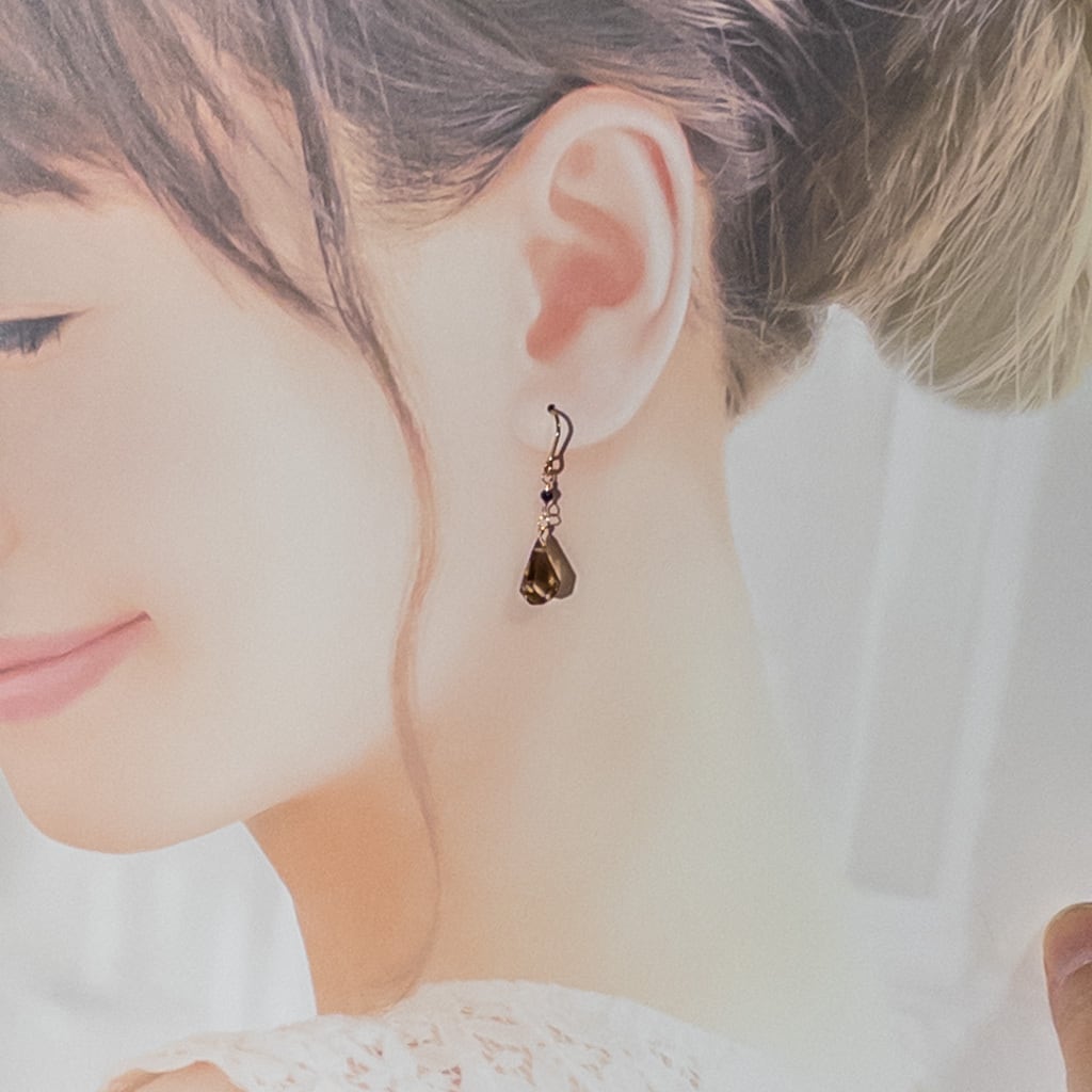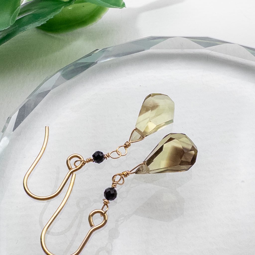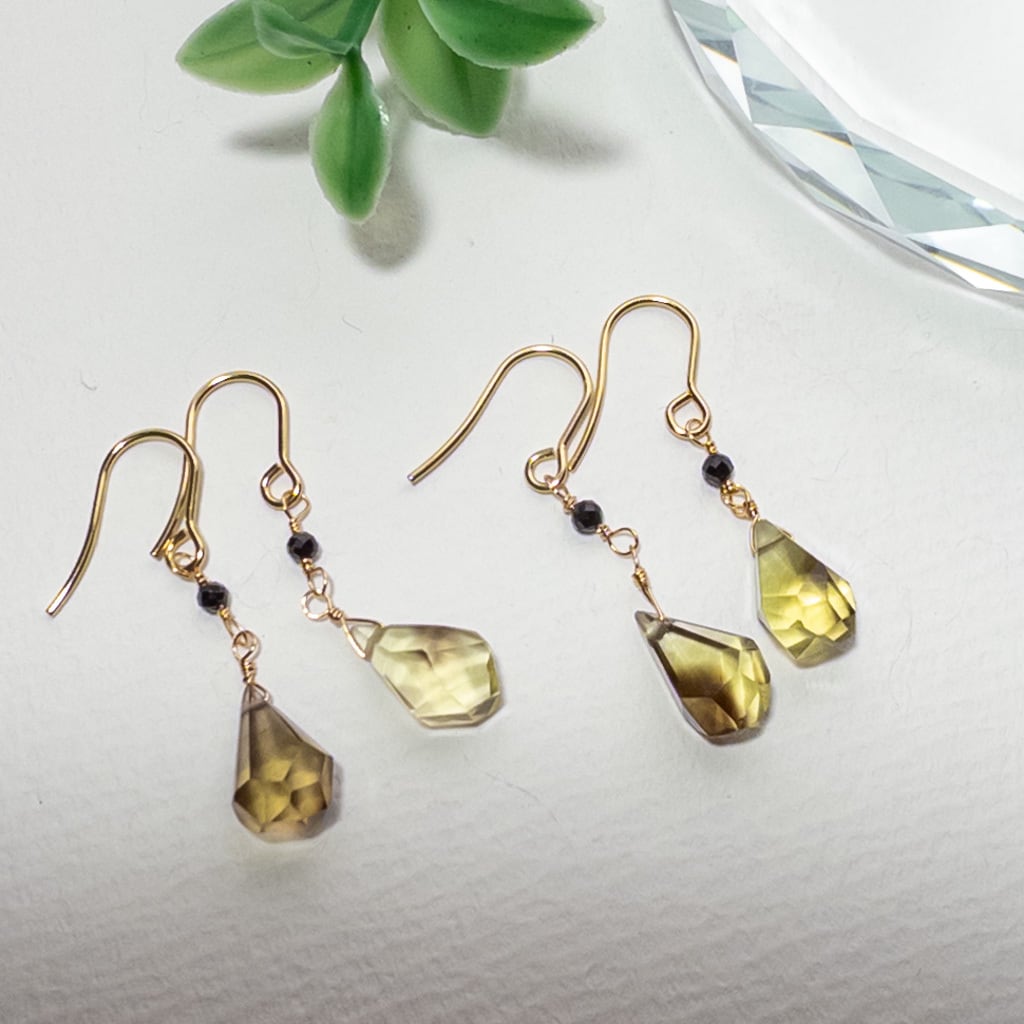 バイカラー レモン×スモーキークォーツ ブラックスピネル ピアス ステンレス K14GF変更可 ac253s10
